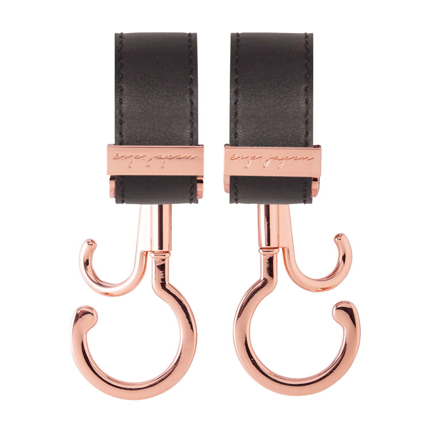 「ママ、パパが使いやすい」を形にした回転式ダブルフック。360°回転するので、どの向きからも荷物が掛けやすい仕様です。回転部分はクルクル回らないように少し固めに設計し、ハンドルにしっかり固定できるよう3本ベルトを採用しています。ベビーカーのほか、キャリーケースなどにも使用できます。