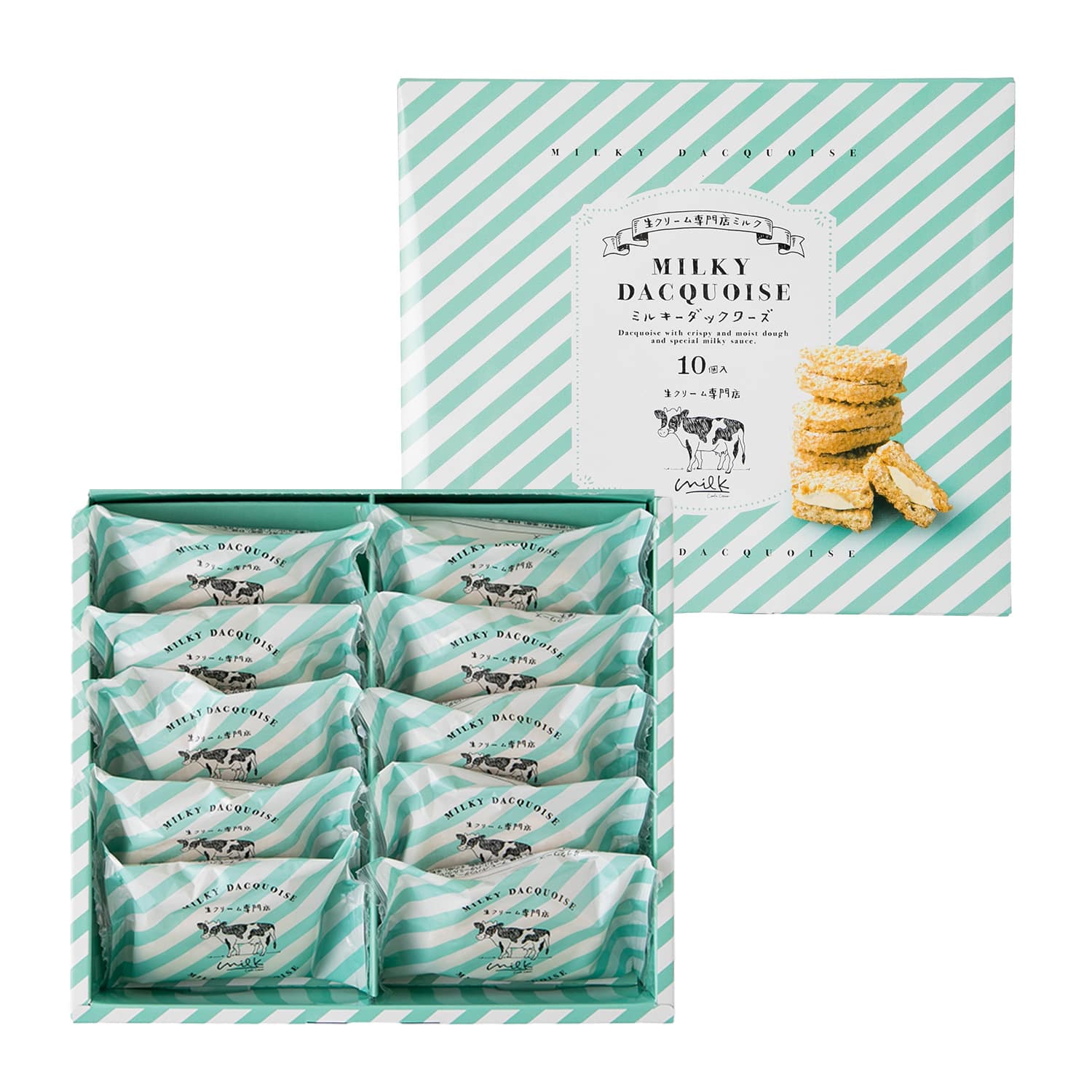 外はさっくり中はしっとりとした口当たりのやわらかい食感。中にはなめらかなクリームがサンドされています。生地の食感となめらかなクリームが口の中で混ざり合って、独自の甘みを味わうことができ、飽きの来ないおいしさをお届けします。