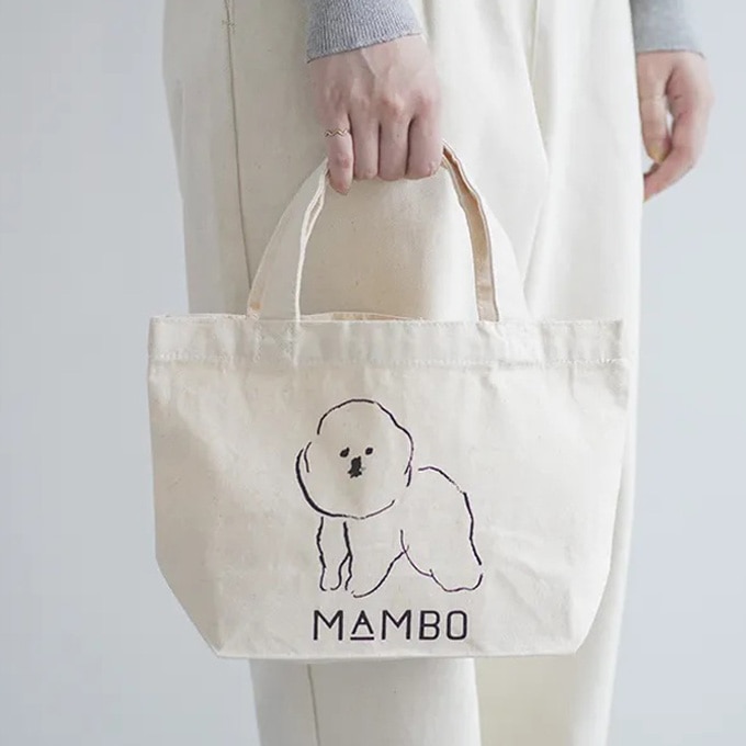 CLASKA Gallery & Shop "DO" オリジナル、イラストレーター 塩川いづみさんの描いたビション・フリーゼ、MAMBO の小ぶりなトートバッグです。ちょっとしたお出かけやお弁当入れにぴったりのサイズ。綿100%、ナチュラルな生成り色の生地で、柔らかな印象です。