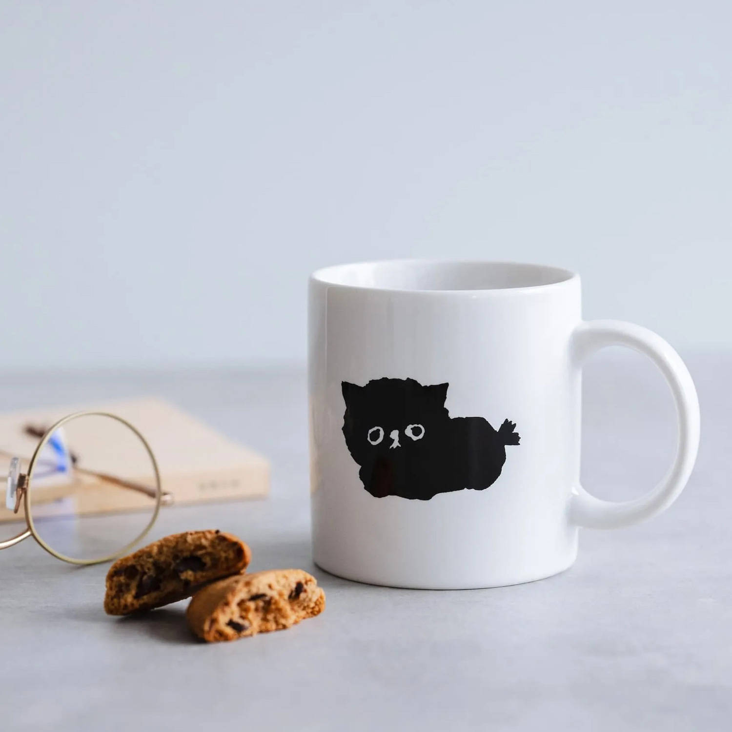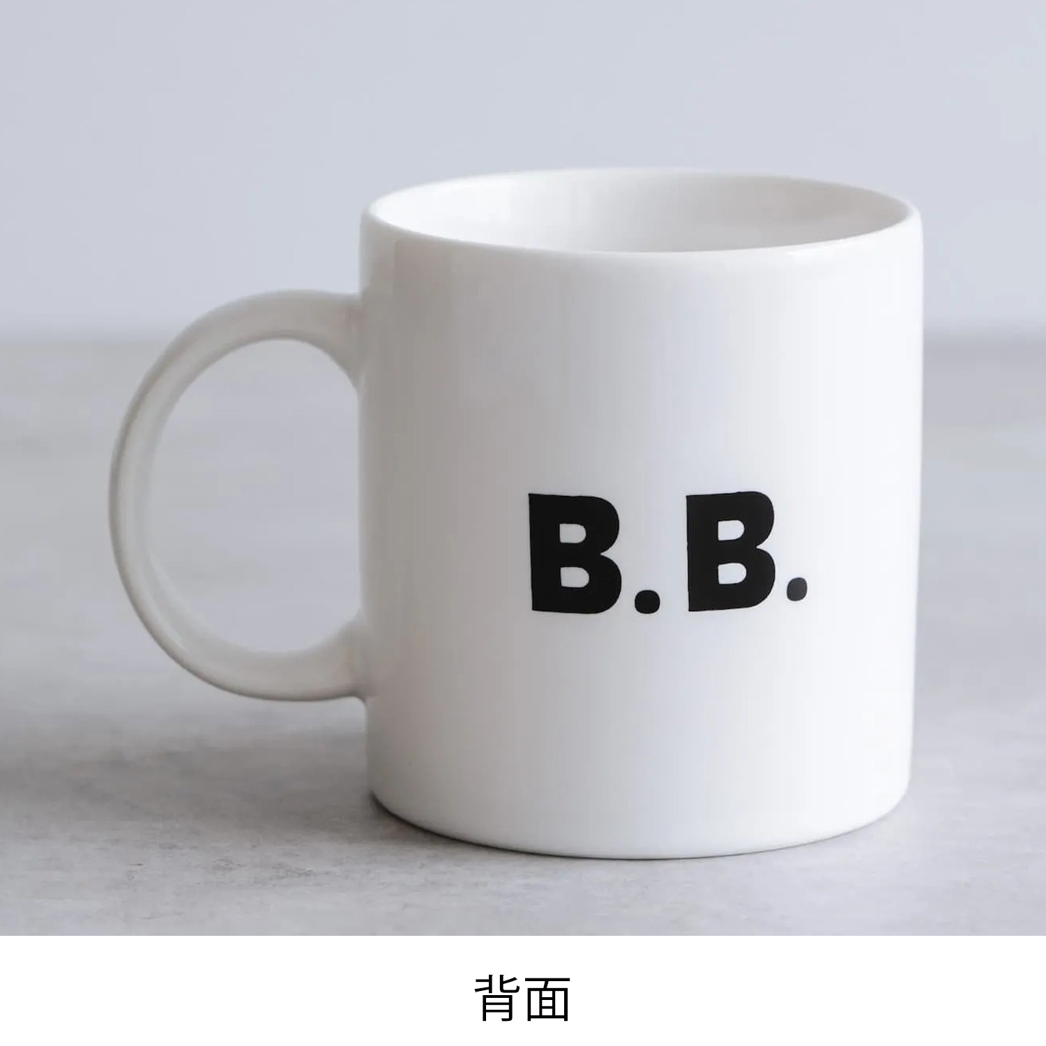 イラストレーター 塩川いづみさんの描いた、ビション・フリーゼ MAMBO の抜け毛から生まれた新しいお友達、B.B. のシンプルな白いマグカップ。幅広の取っ手が持ちやすく、コーヒーや紅茶、スープなどをたっぷり入れて普段使いしやすいサイズのマグカップです。