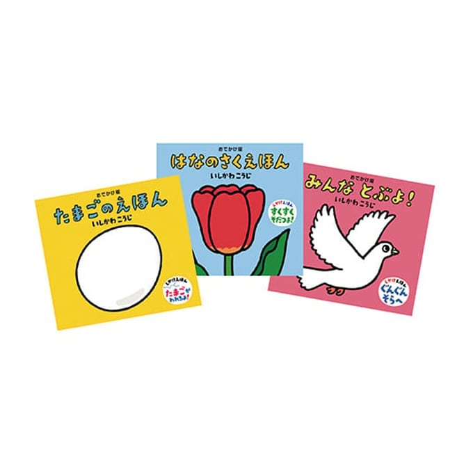 - 「おでかけ版 たまごのえほん」「おでかけ版 はなのさくえほん」「おでかけ版 みんなとぶよ!」いしかわこうじ(作・絵)/出版社:童心社