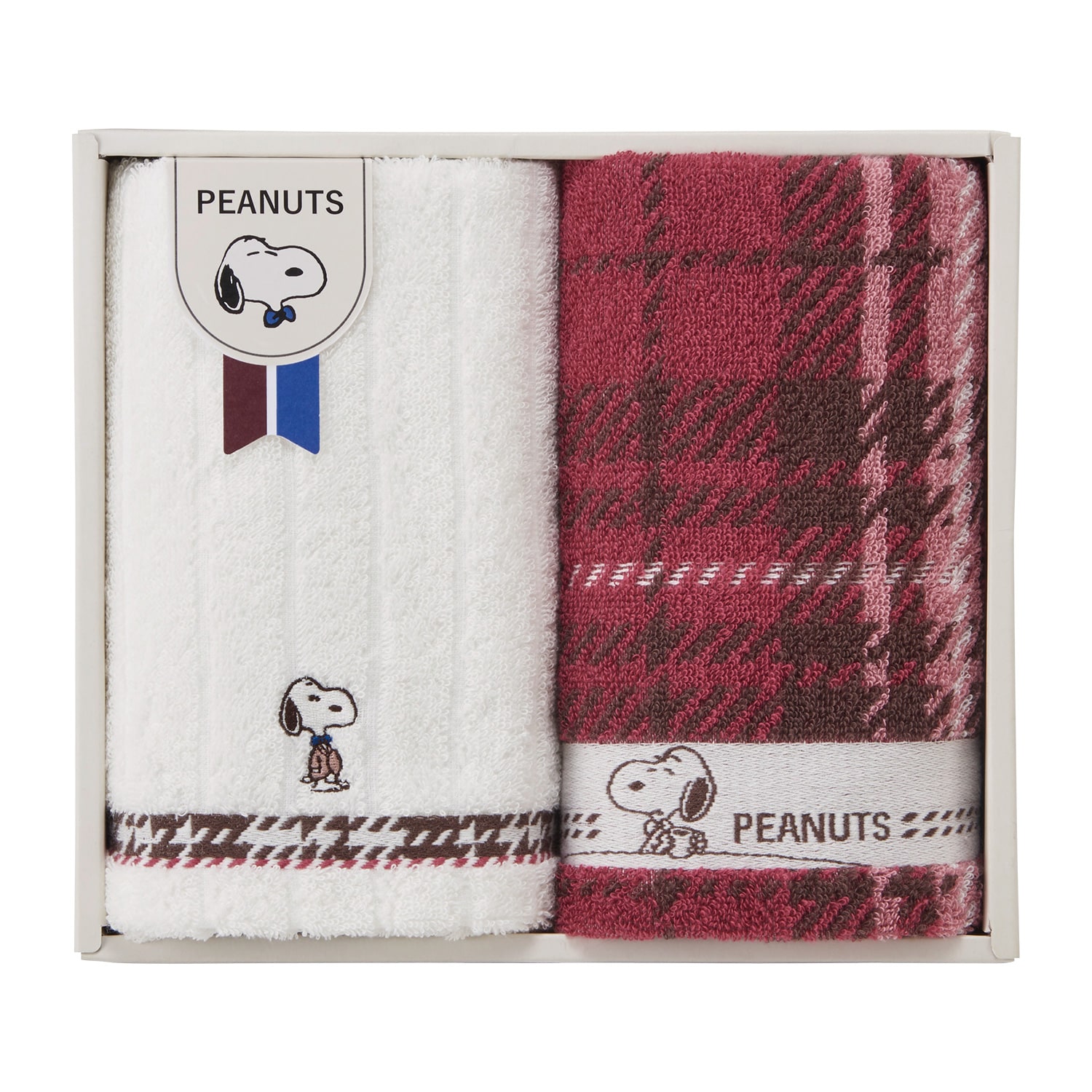どこか懐かしく、あたたかな雰囲気をもつタータンチェック。チェックファッションに身を包んだスヌーピーがゆったりとティータイムを楽しんでいるアートをさりげなくあしらいました。華やかでありながら、落ち着きがあり心地よさを感じていただけるタオルギフトです。