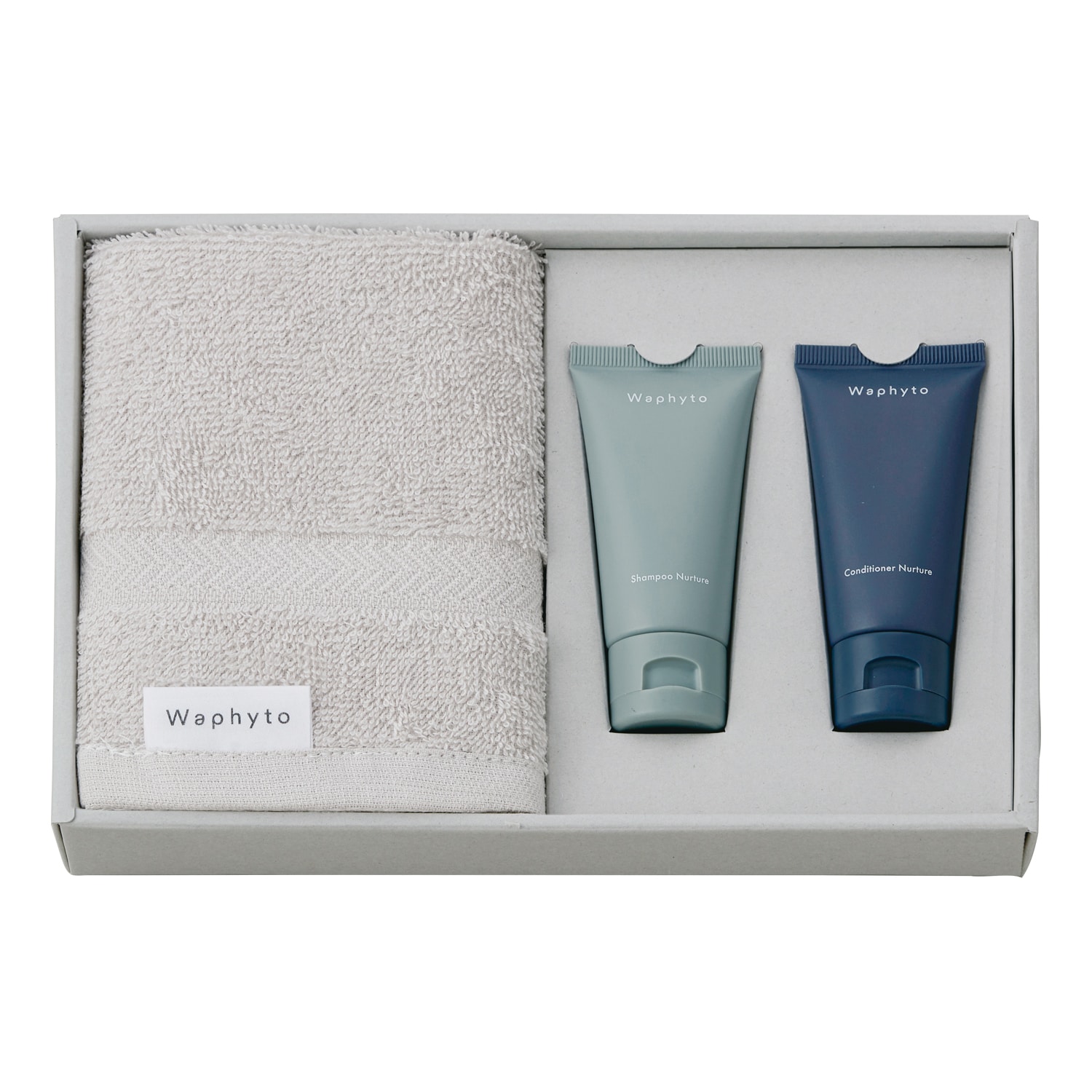 - サイズ(約):ウォッシュタオル=(34×35cm)、シャンプー30ml、コンディショナー30g/素材:ウォッシュタオル=綿100%/日本製
