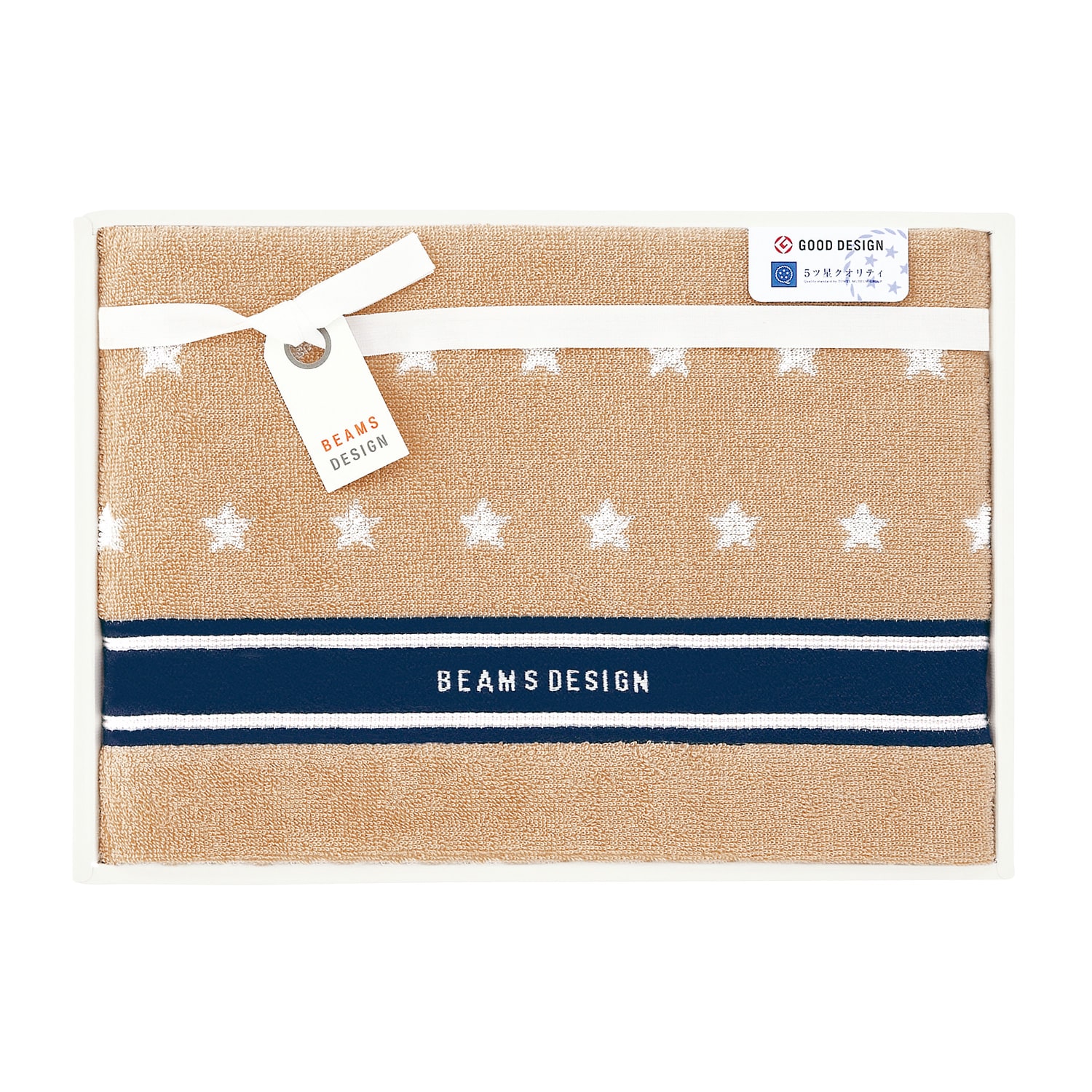 セレクトショップの先駆けとして時代をリードしてきたBEAMS。〈BEAMS DESIGN〉は、これまで培ってきた選択眼、企画力、プロデュース力を活かし、スタンダードなモノにあたらしいアイデアを加えて、毎日の生活をこころ豊かに彩るデザインを創造するブランドです。ベージュのベースにポップな星柄パターンとロゴデザインをあしらった、遊びゴコロをきかせたデザイン。ふんわりとした肌触りと吸水性があるバスタオルです。