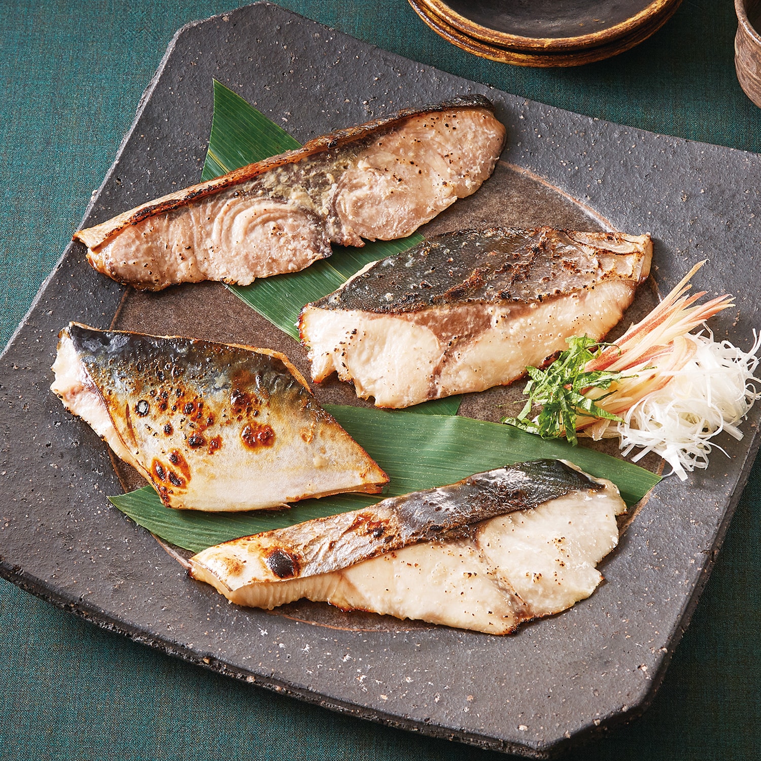 - ぶり酒粕漬・サワラ酒粕漬・ふくらぎ酒粕漬・さば酒粕漬各60g/ぶり・サワラ・ふくらぎ・さば:富山県産