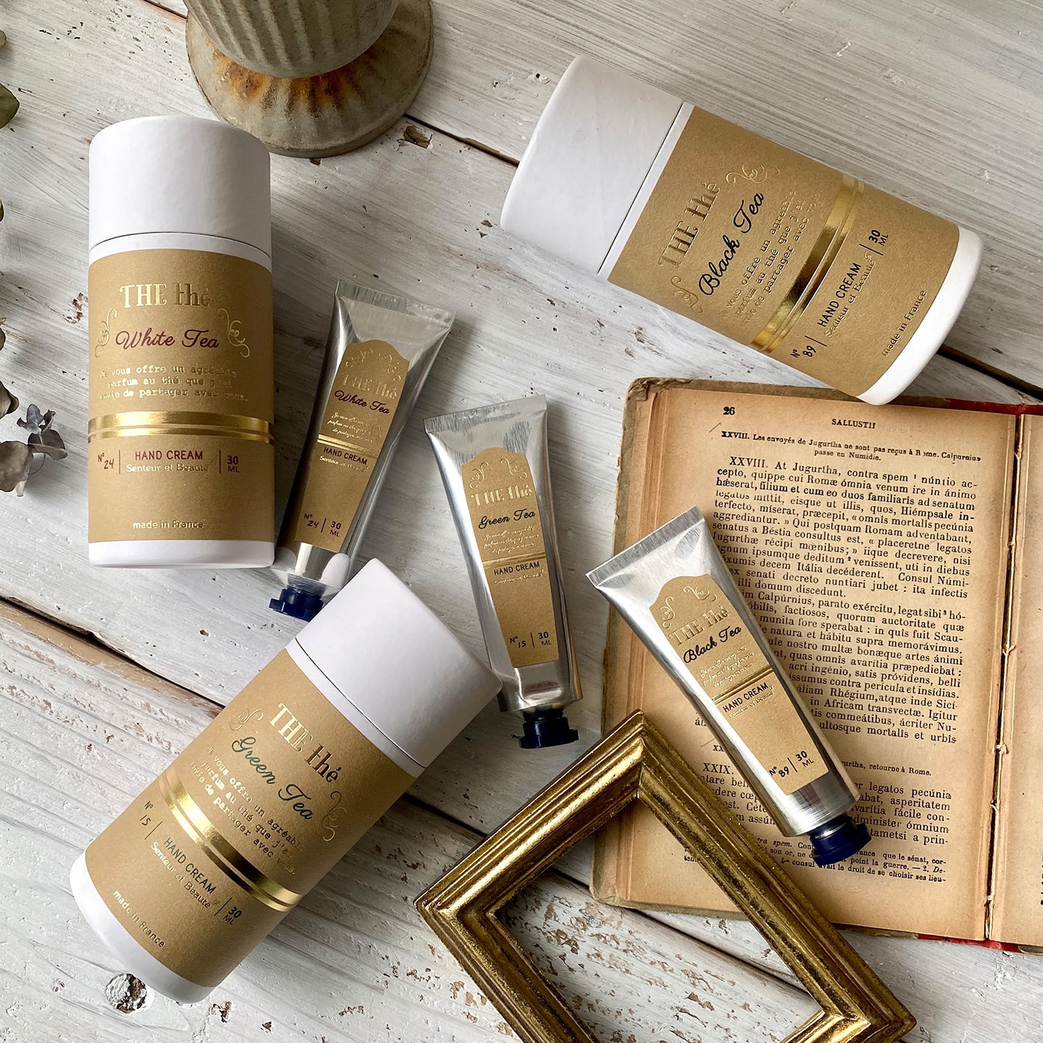 フランス・プロヴァンス発ティーフレグランス。ティータイムのようなホッと心休まる瞬間を届けたいという想いから生まれました。乾燥から手肌を守るのにベタつかないテクスチャーのハンドクリームと、リネン回りや空間にシュッと吹きかければ、自分好みの香りを纏うことができるピローミストのセットです。シトロンと甘酸っぱいルバーブ、フレッシュなフィグリーフなどが合わさったまろやかな甘みのグリーンティーの香り。