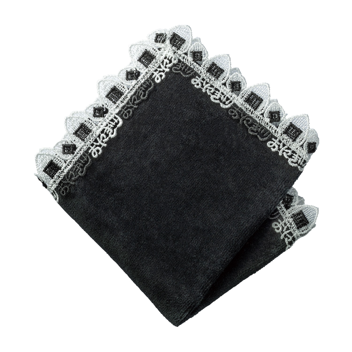 〈お寿司〉”こんなレース見たことないシリーズ”。マグロがのったお寿司柄のレース。タオル地には、お魚の漢字がずらずらと。回転寿司のイメージがなんとも愉快な語れる&笑えるハンカチです。