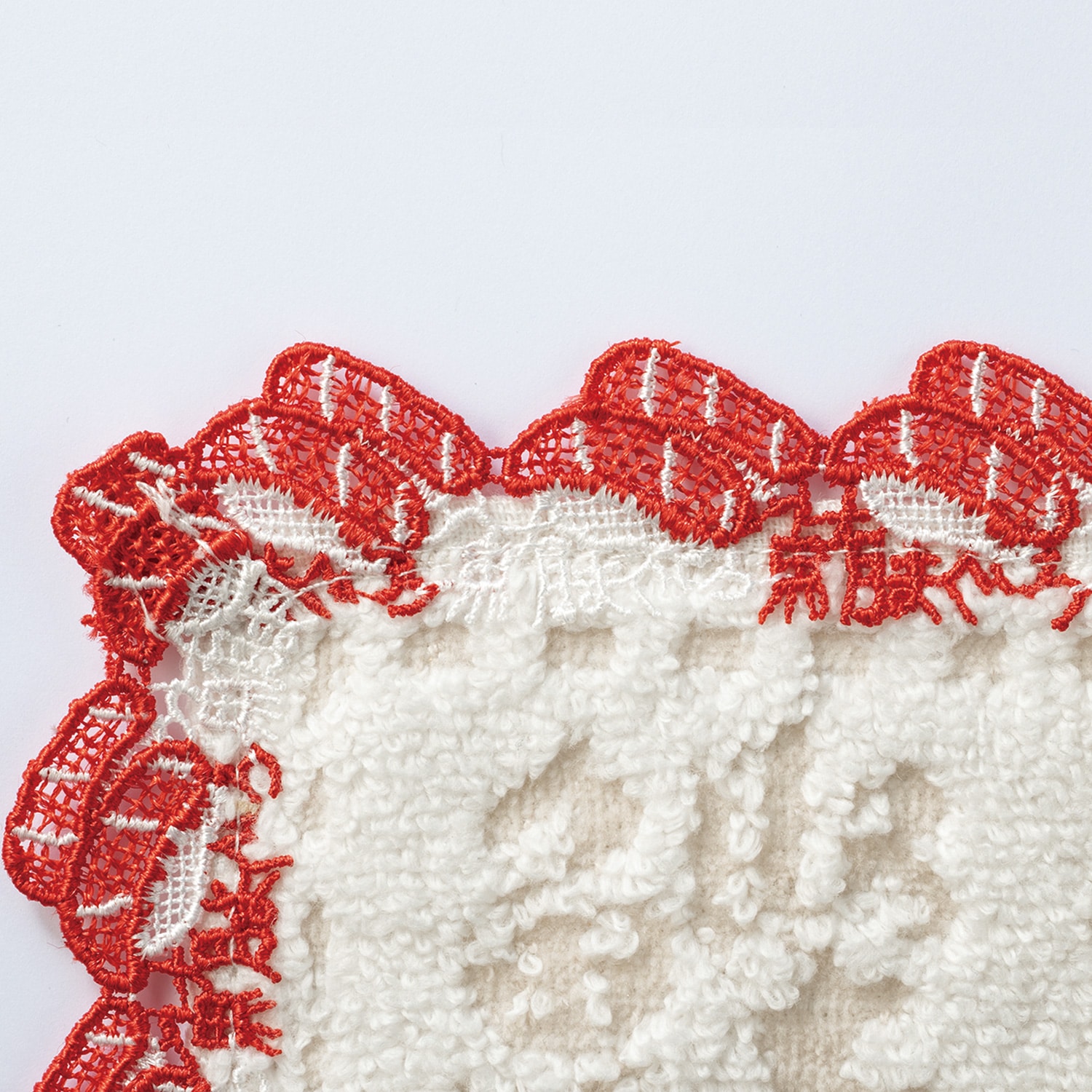 〈おにぎり〉日本のソウルフードでもあり、今や世界のファストフードとなりつつあるおにぎりが、レースとなって登場です。手に取った誰もがクスッと笑っていただけて楽しいひと時になること間違いなし。