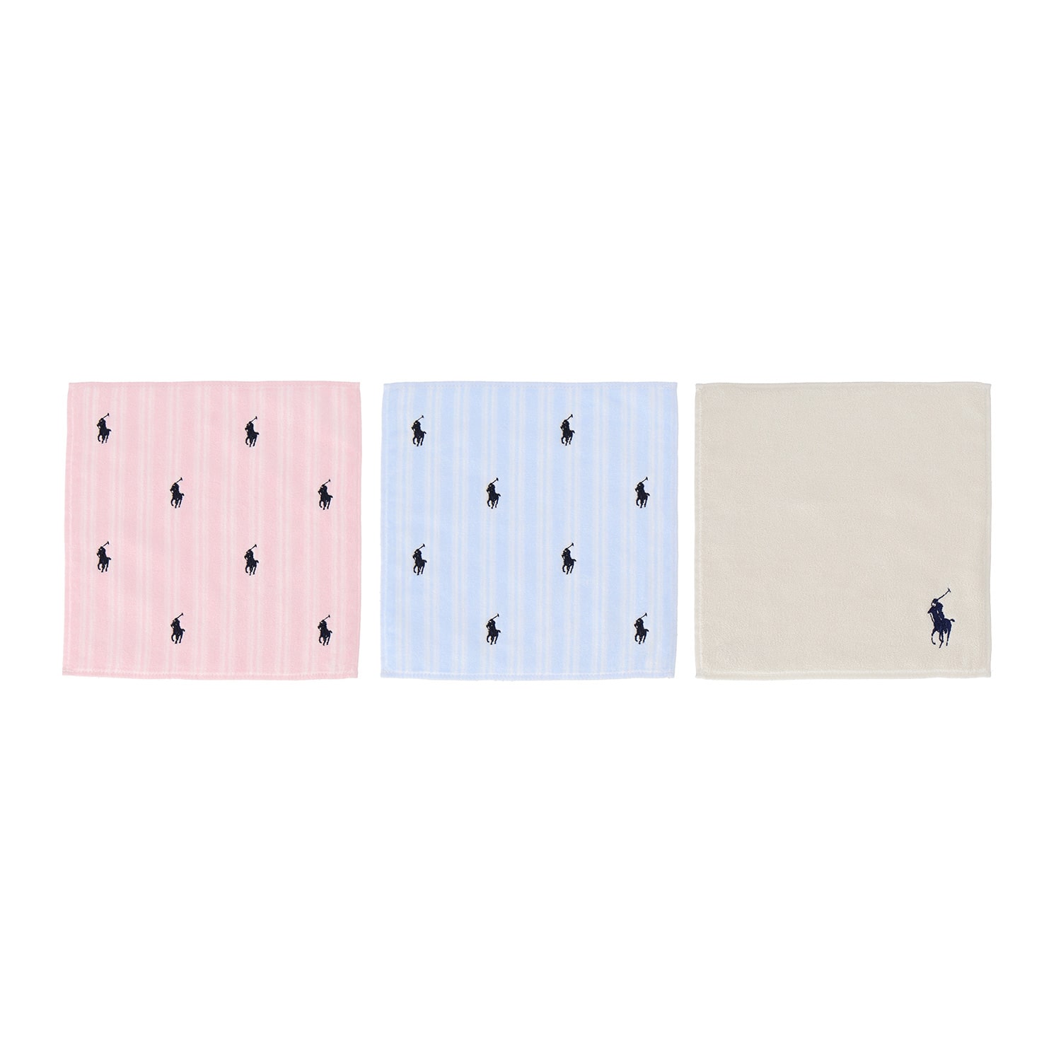 ポロ ラルフ ローレン ミニタオル3枚セット ピンク・サックス・アイボリー