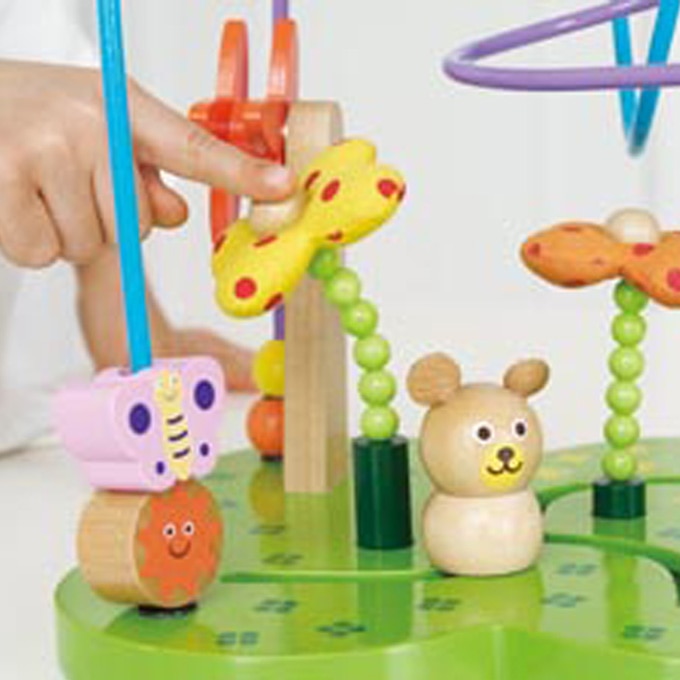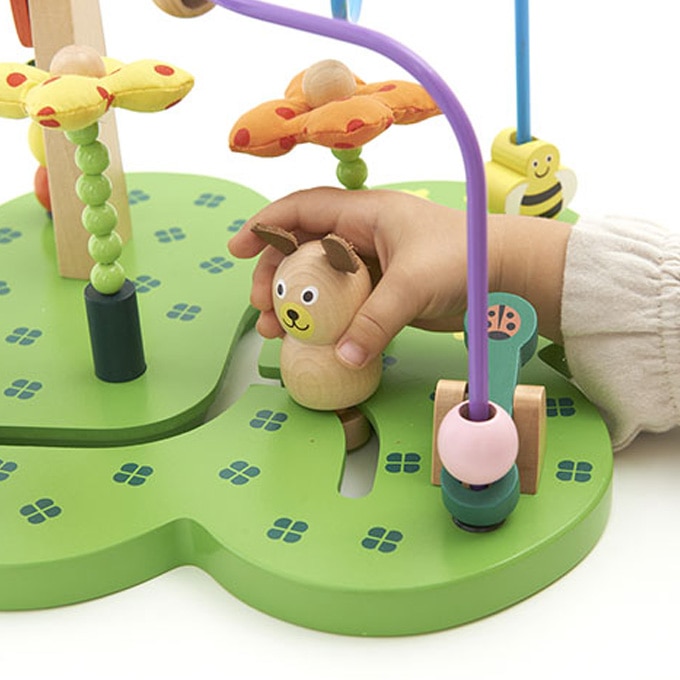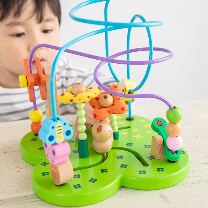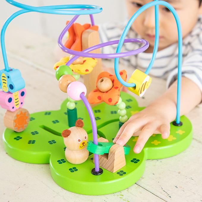 チョウやハチが飛ぶお花畑を、クマさんと一緒にお散歩できるビーズコースターです。ゆらゆら揺れるお花やくるくるまわる風車など楽しいギミックも。