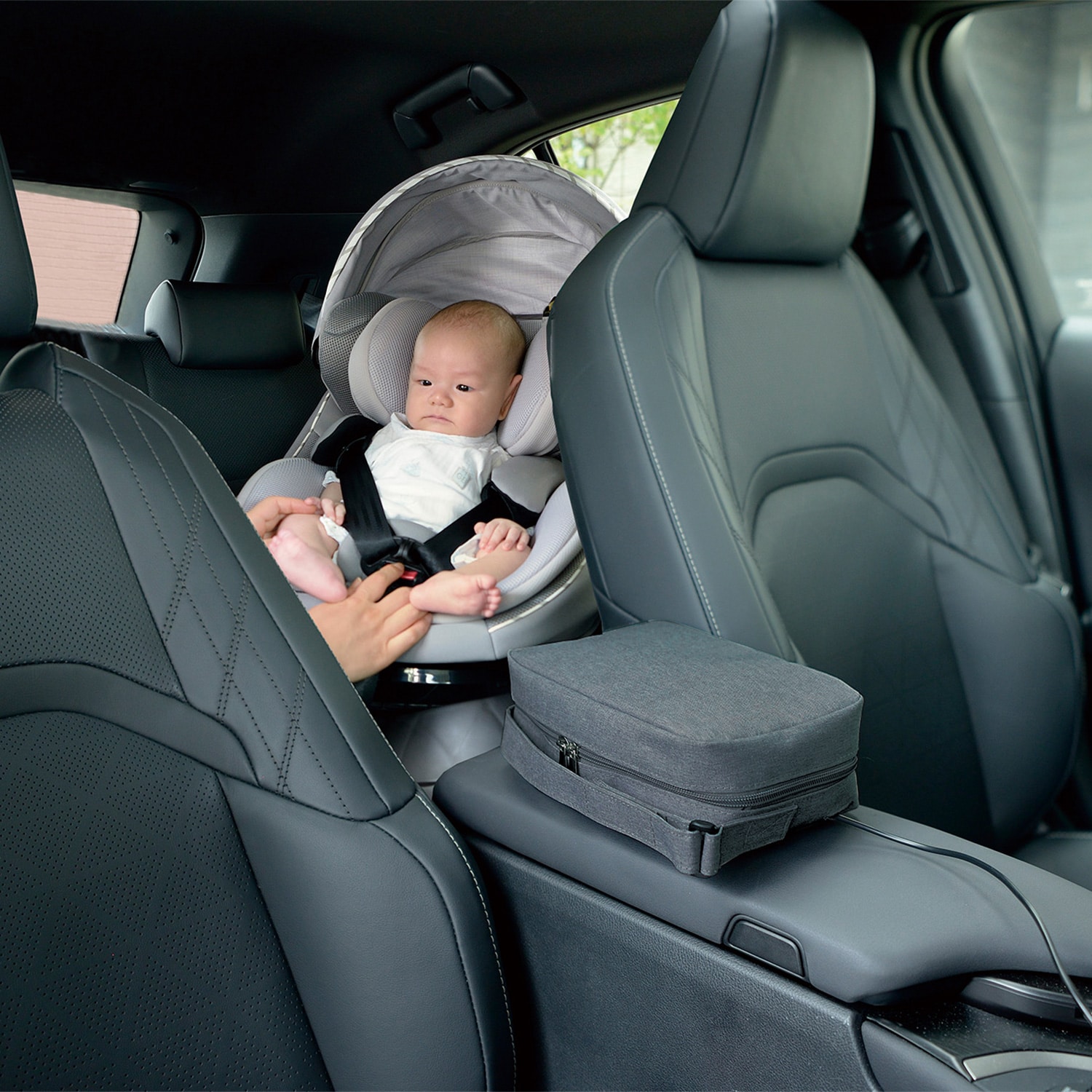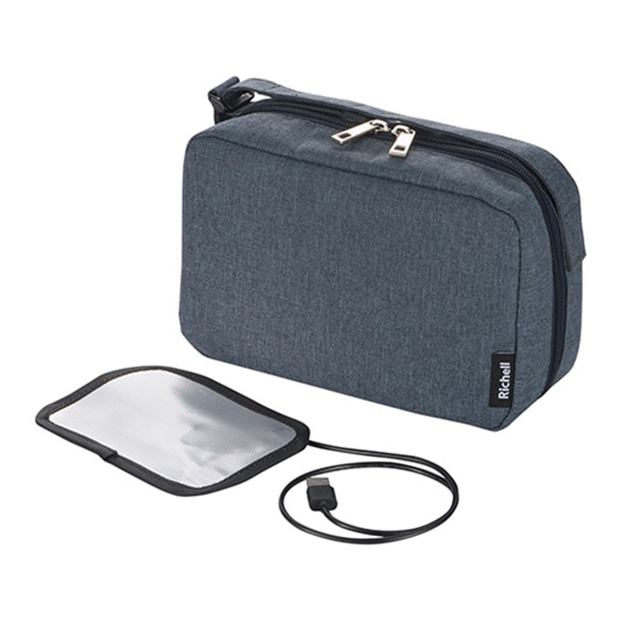 外出先でもあったかおむつ替え、ヒーター付きのおむつポーチです。ヒーター付きのポーチで、おむつとおしりふきを両方温めます。ポーチは熱を通しにくい素材で温かさが持続します。素早く温まるUSBタイプです。ヒーターは取り外すことができるので、おむつポーチとしても年中使用できます。接続したモバイルバッテリーは、外側のポケットに収納することができます。