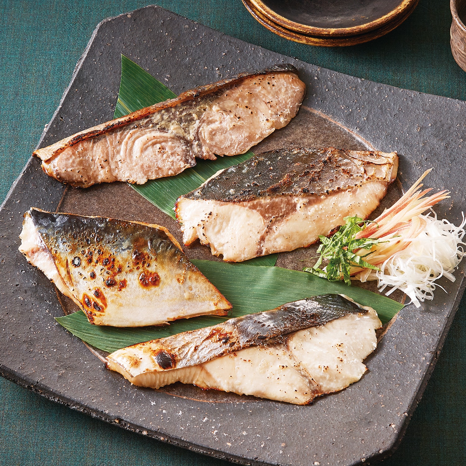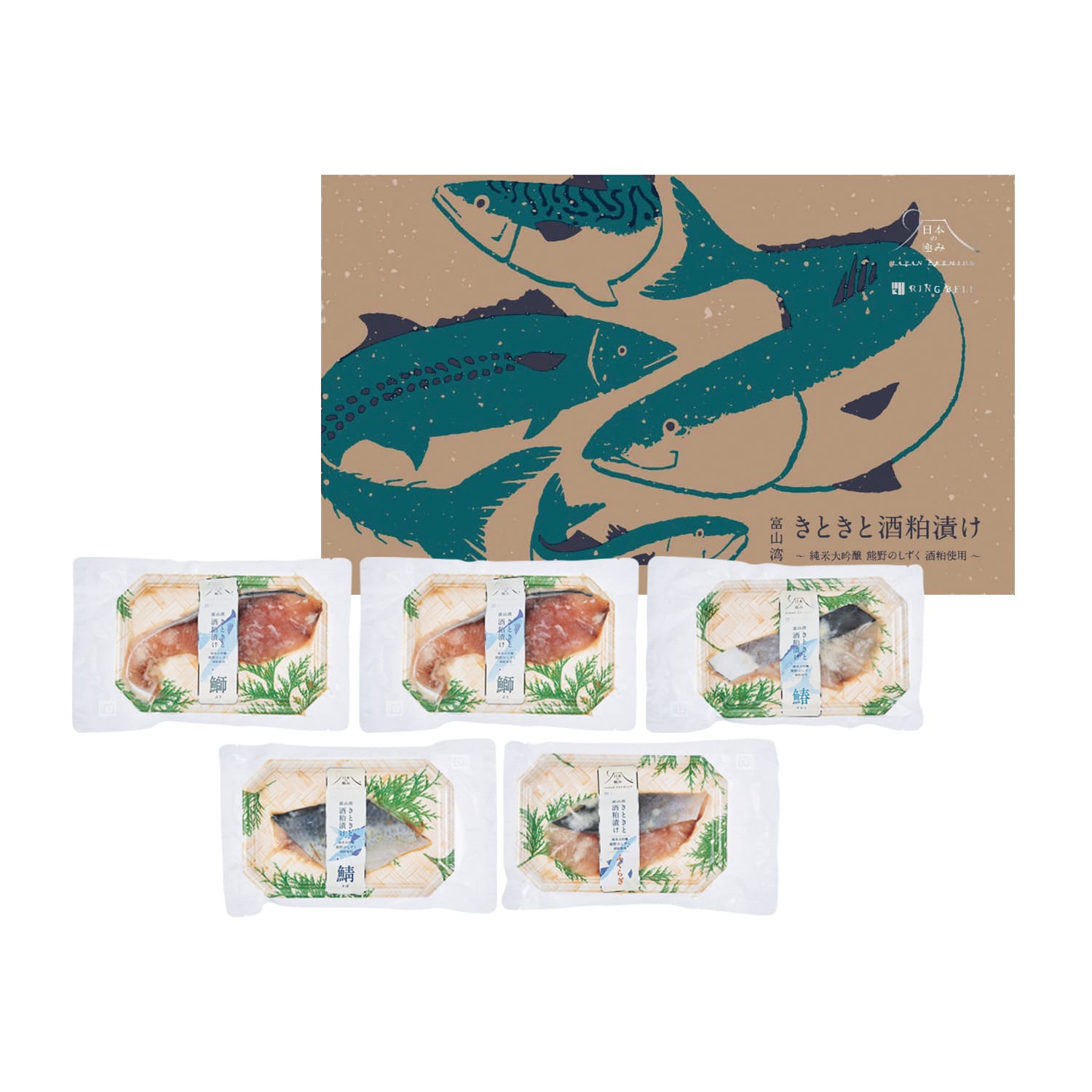 - ぶり酒粕漬60g×2、さば酒粕漬・サワラ酒粕漬・ふくらぎ酒粕漬各60g/ぶり・さば・サワラ・ふくらぎ:富山県産