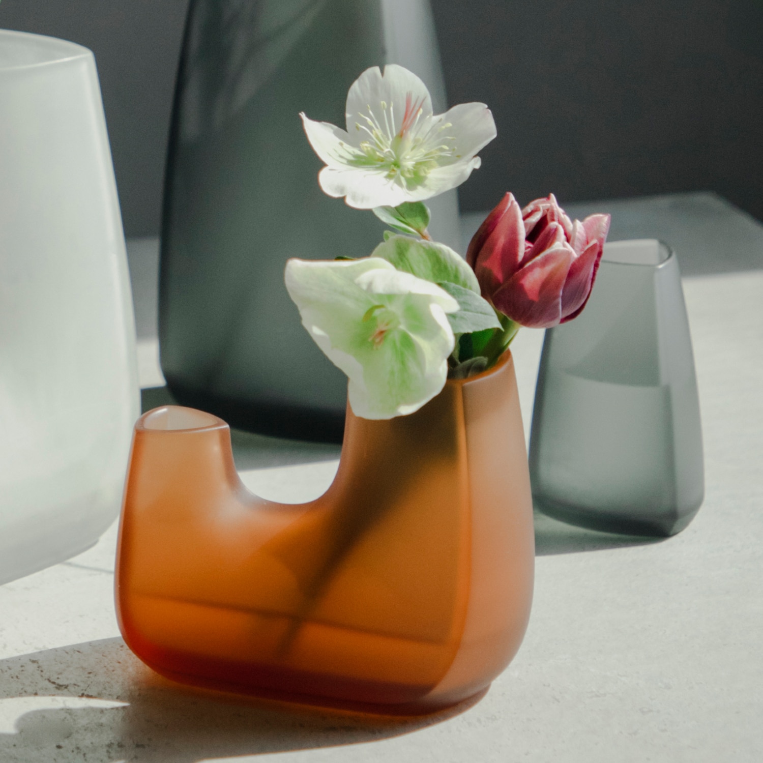 植物の魅力を引き立て、インテリアオブジェとしても存在感を放つフラワーベースTRE。磨りガラスのように優しく光を透過し、重厚感がありながらも丈夫で割れにくく、取り回ししやすい素材なので、どんな場所でも安心してご使用いただけます。