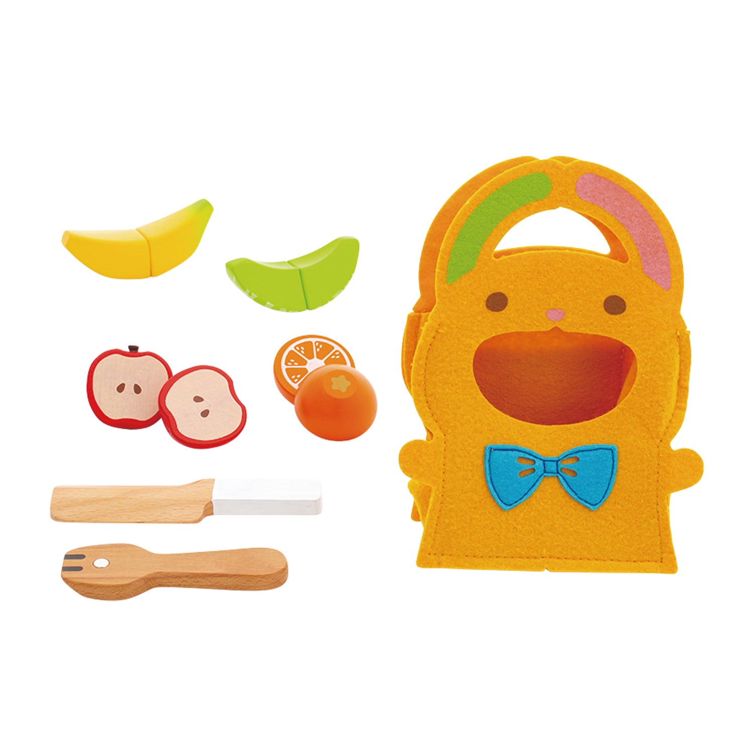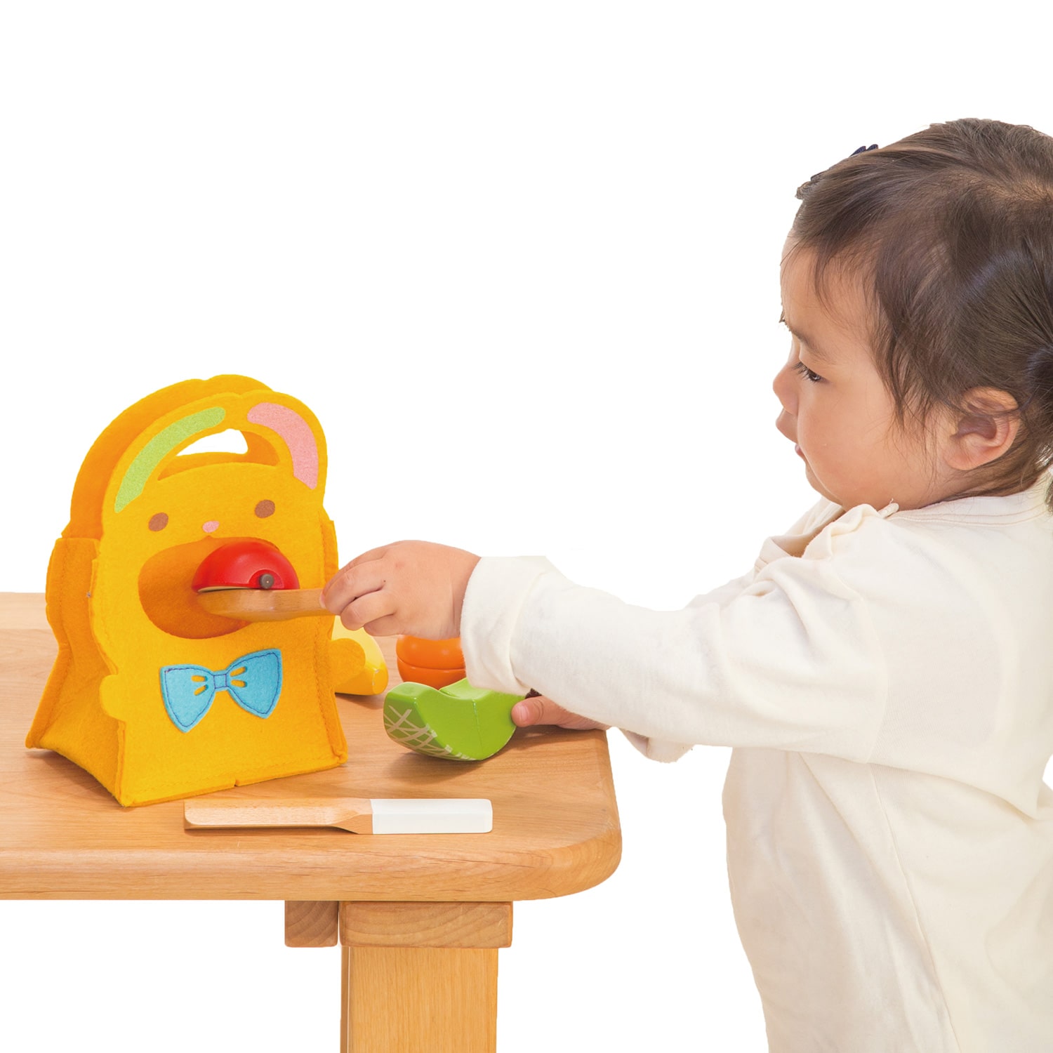 はじめてのおままごとにおすすめなセットです。マグネットでつけ外しができる果物を包丁でカットしてうさぎさんに食べさせてあげられます。果物は小さいお子さまのお手てにちょうどよい大きさです。