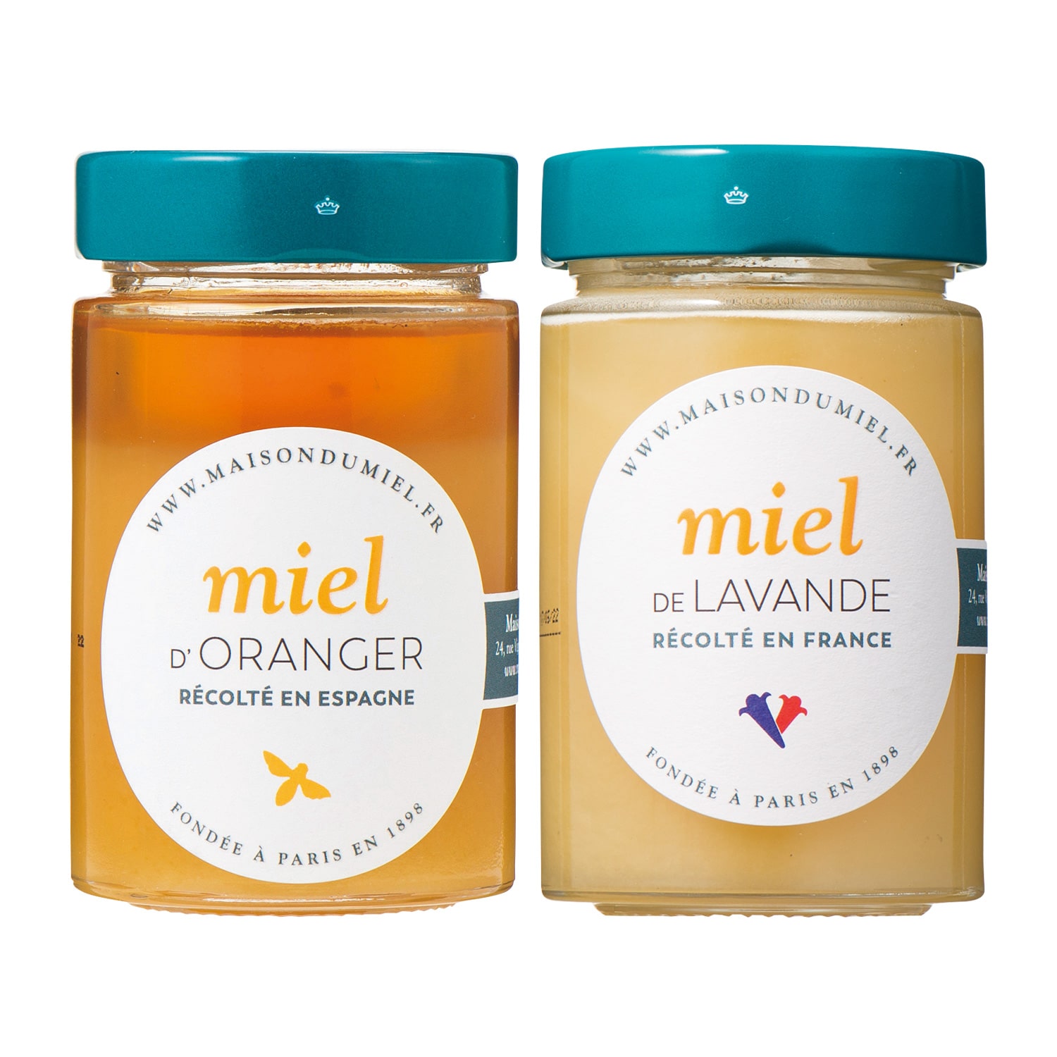 パリで人気の老舗はちみつ専門店〈ラ・メゾン・デュ・ミエル〉のはちみつを2種類お届けします。オレンジはちみつは優しい甘さとオレンジの花に似たエレガントな香り。クセのない味わいで、お菓子やお料理にも使いやすい一品です。ラベンダーはちみつは、フルーティな風味やラベンダーの花の香りを楽しめる、パリの朝食に欠かせない香り高いはちみつです。