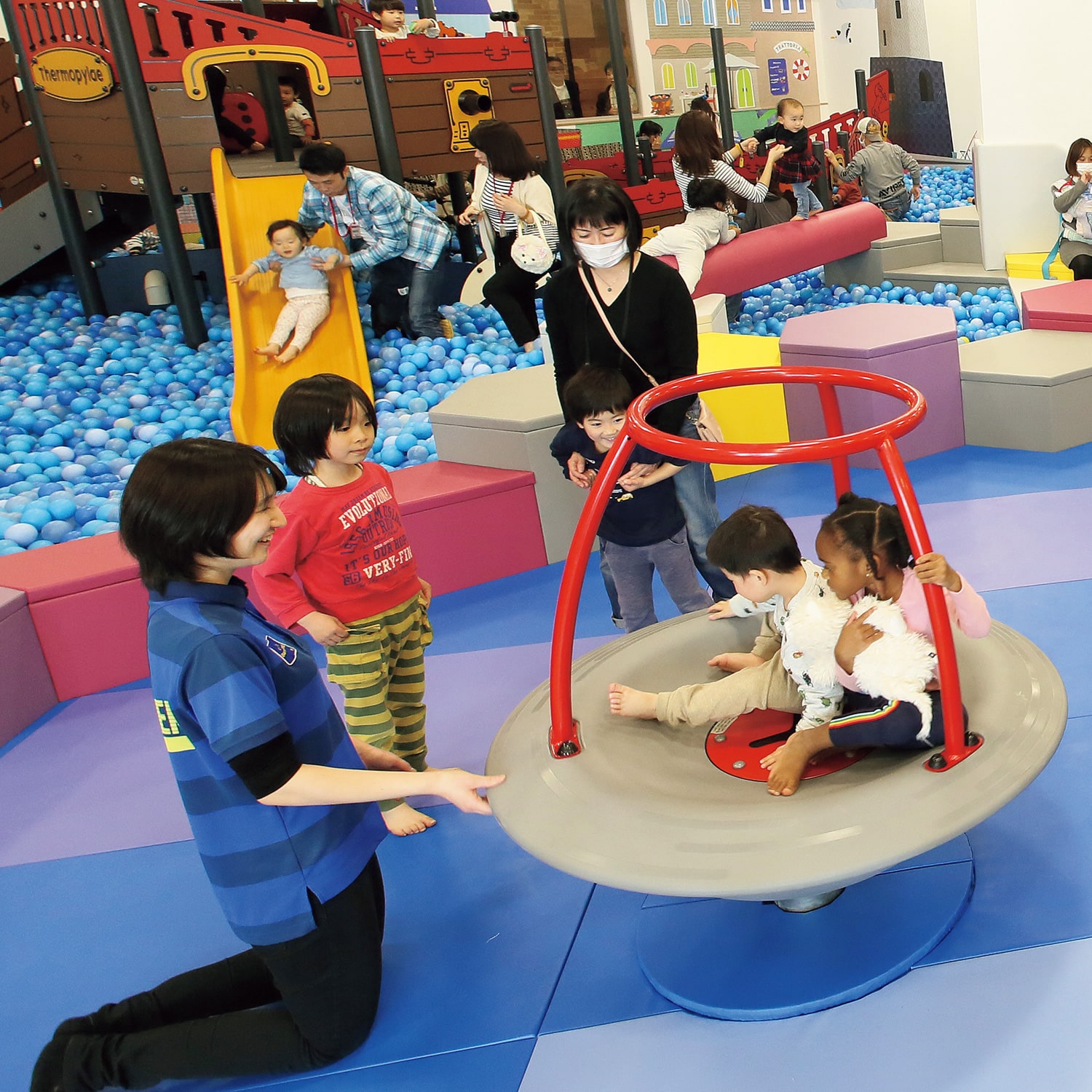 キドキドは〈ボーネルンド〉がプロデュースする、雨の日も風の日も天候に左右されずに親子で楽しめる子供向け「室内遊び場」です。広々とした空間に「こころ・頭・からだ」を満たす遊び場があふれています。