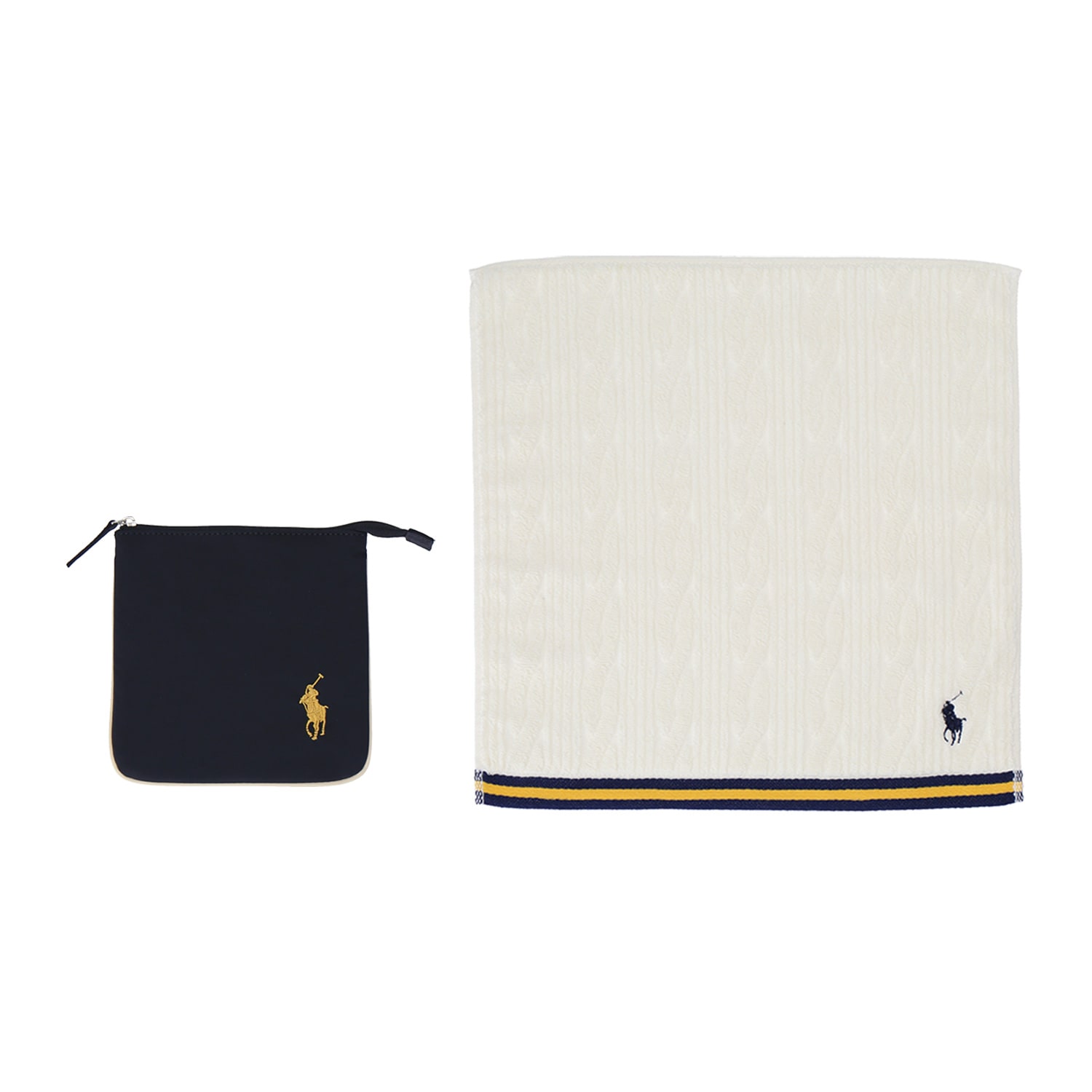 • ポロ ラルフ ローレン ハンカチーフケース&ラージタオルセット ネイビー×アイボリー