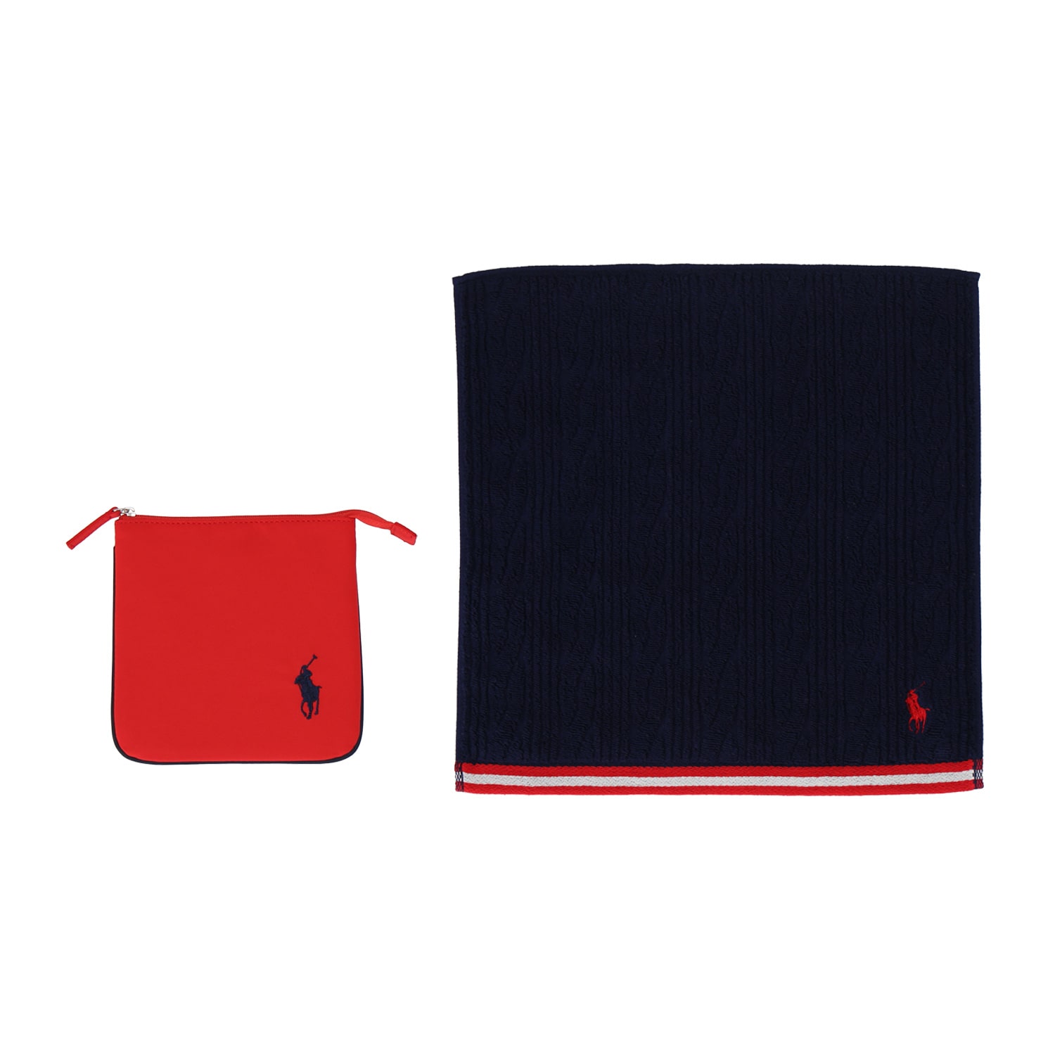 • ポロ ラルフ ローレン ハンカチーフケース&ラージタオルセット レッド×ネイビーブルー
