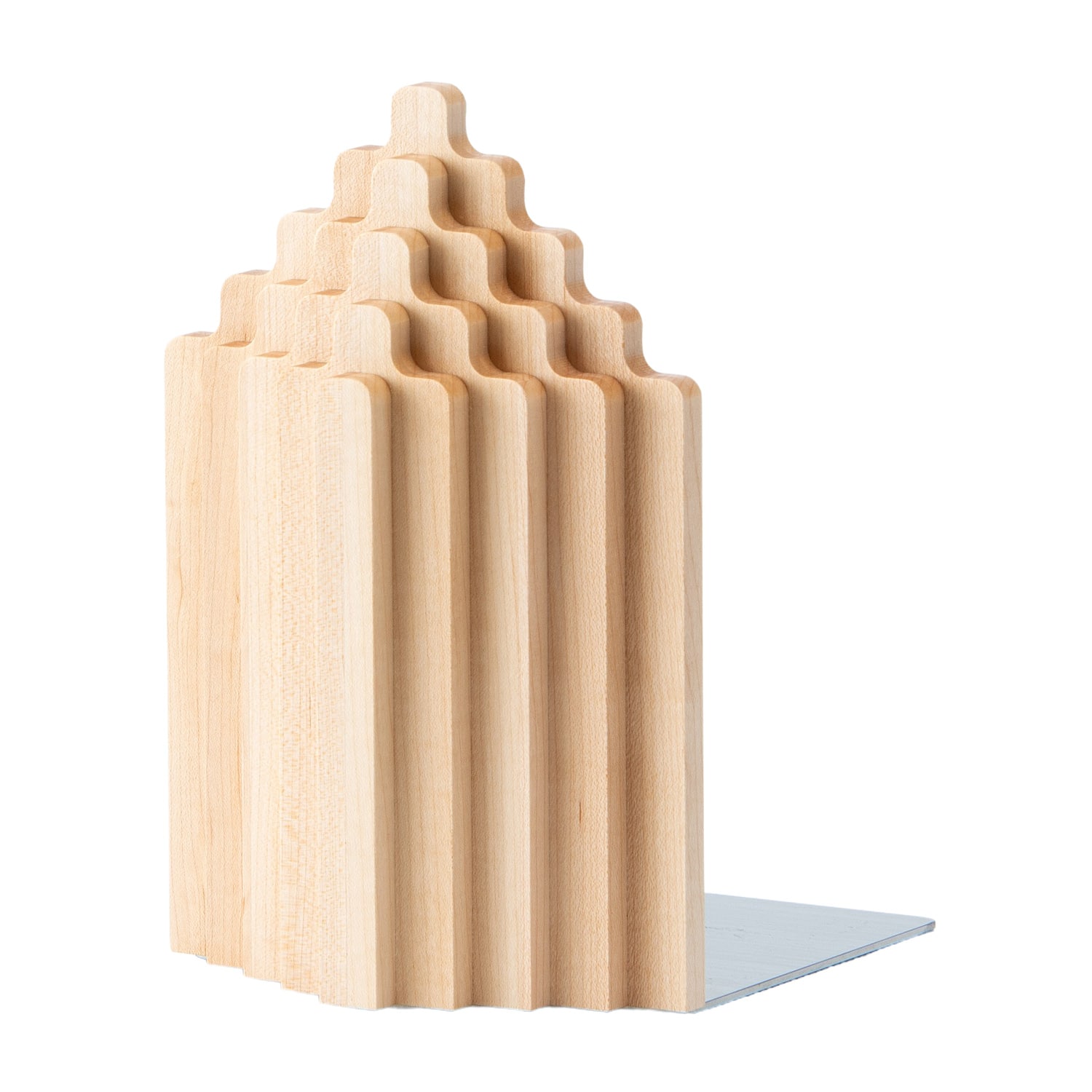 「TORIDE」の意味は砦。砦は本城を離れた要所に築いた小さな城。本の置き場を人から離れたところにある知の砦と捉えてみました。存在感のある城壁のような木部がしっかりと本を支えます。木材を複雑に削り出す事で、ひと味違った木目の現れ方や手触りを楽しむことができ、機能美だけに留まらない遊び心があります。