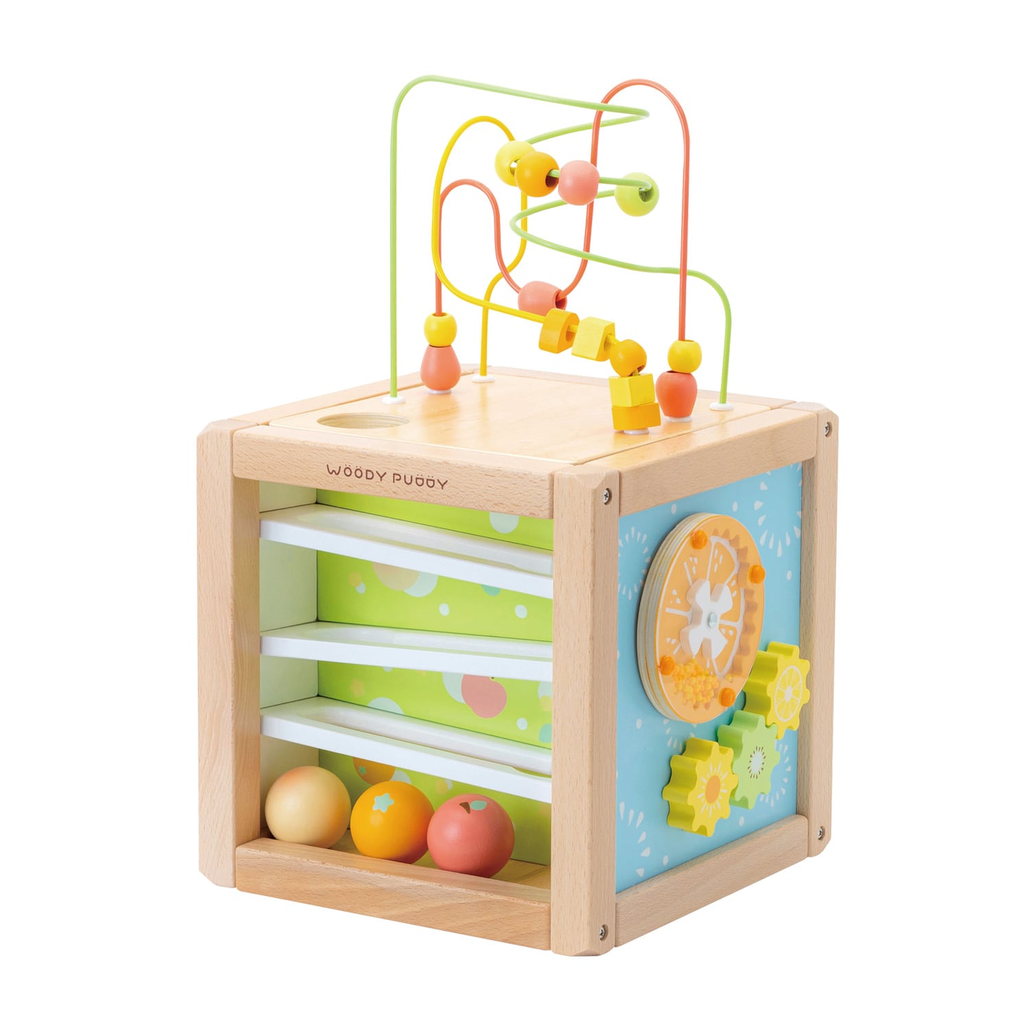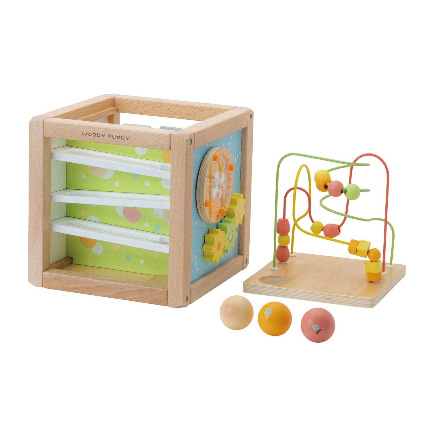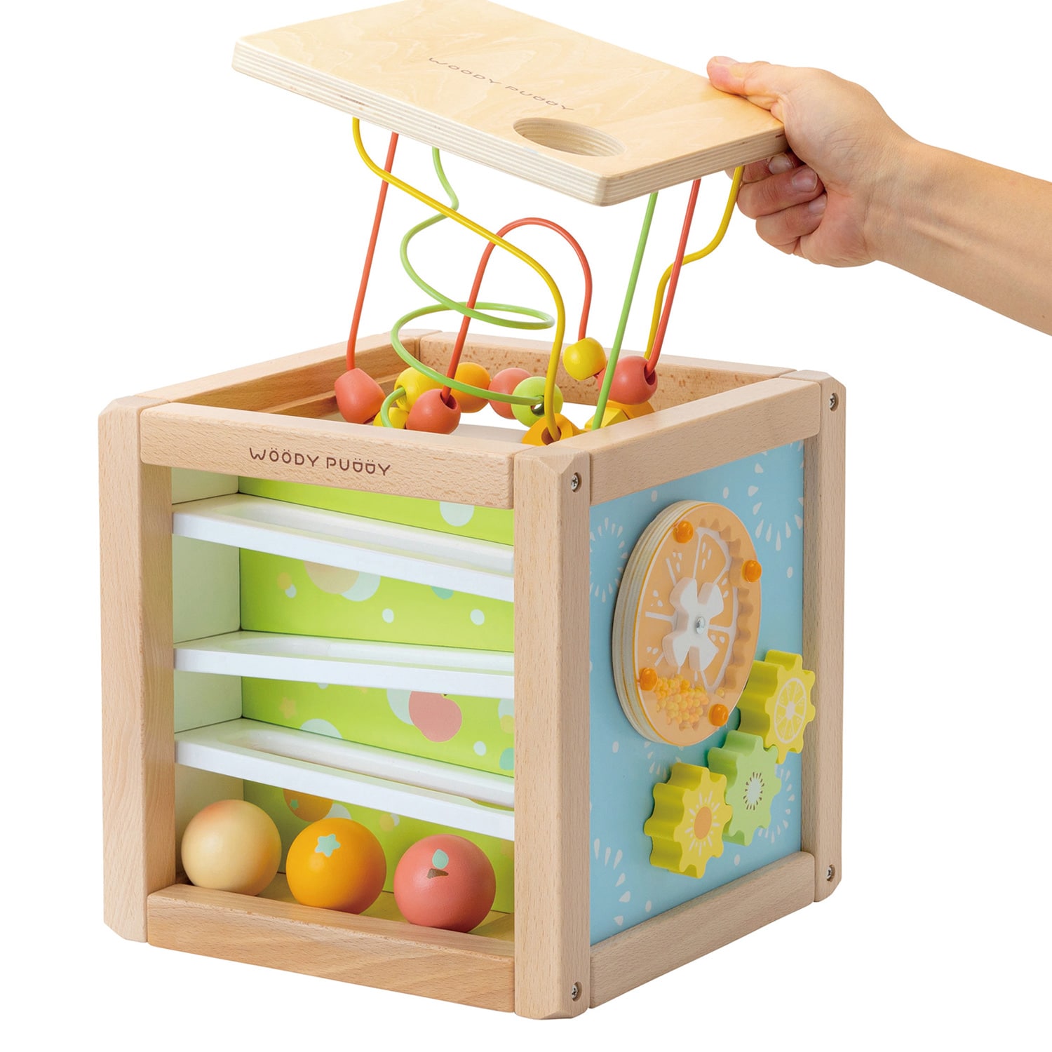 楽しいしかけと、指先の発達を促すあそびがたっぷりつまったアクティビティボックス。言葉を引き出す5つの知育あそびとカラフルな果物で、色や言葉を学びながら会話も一緒に楽しめます。