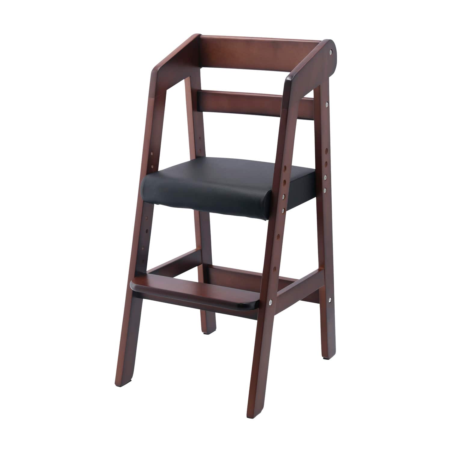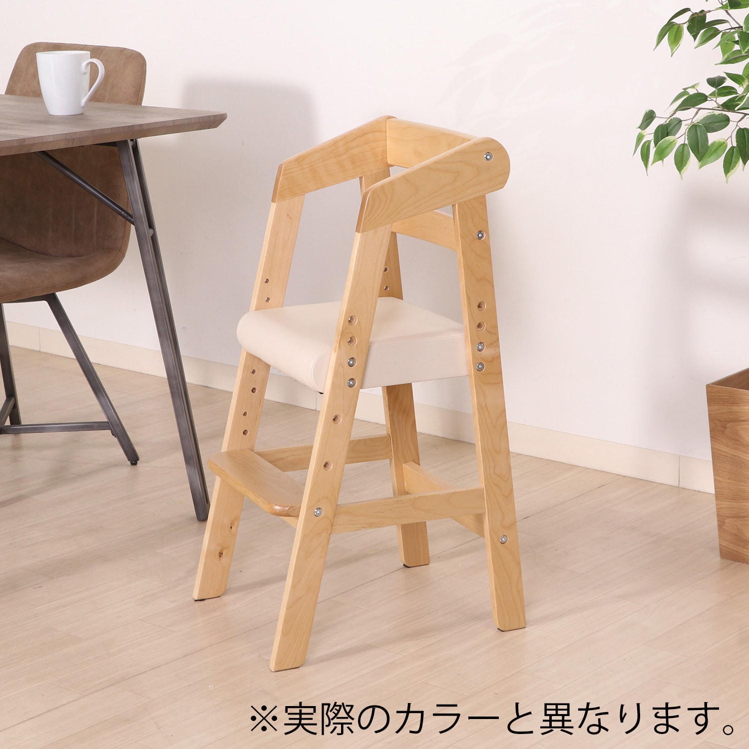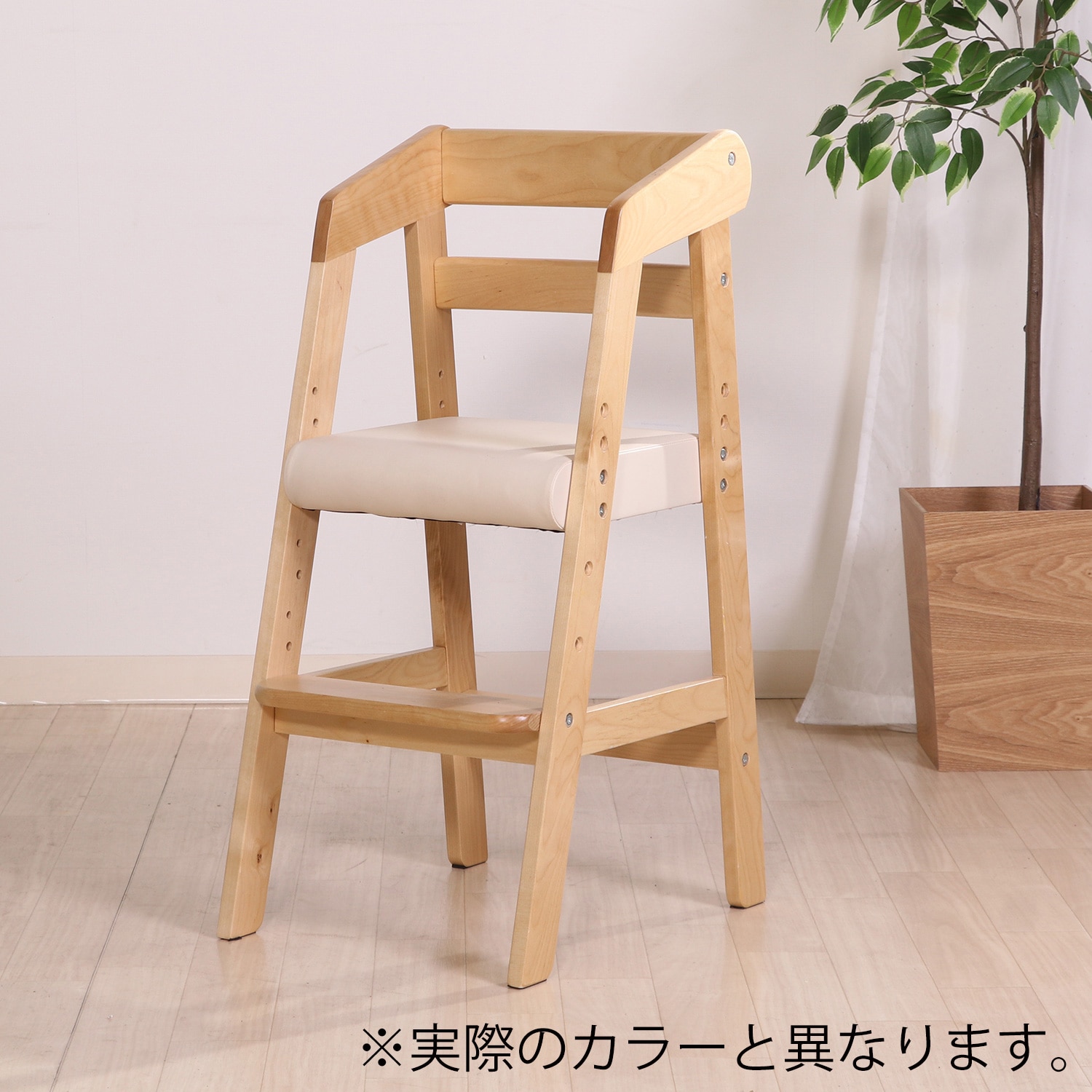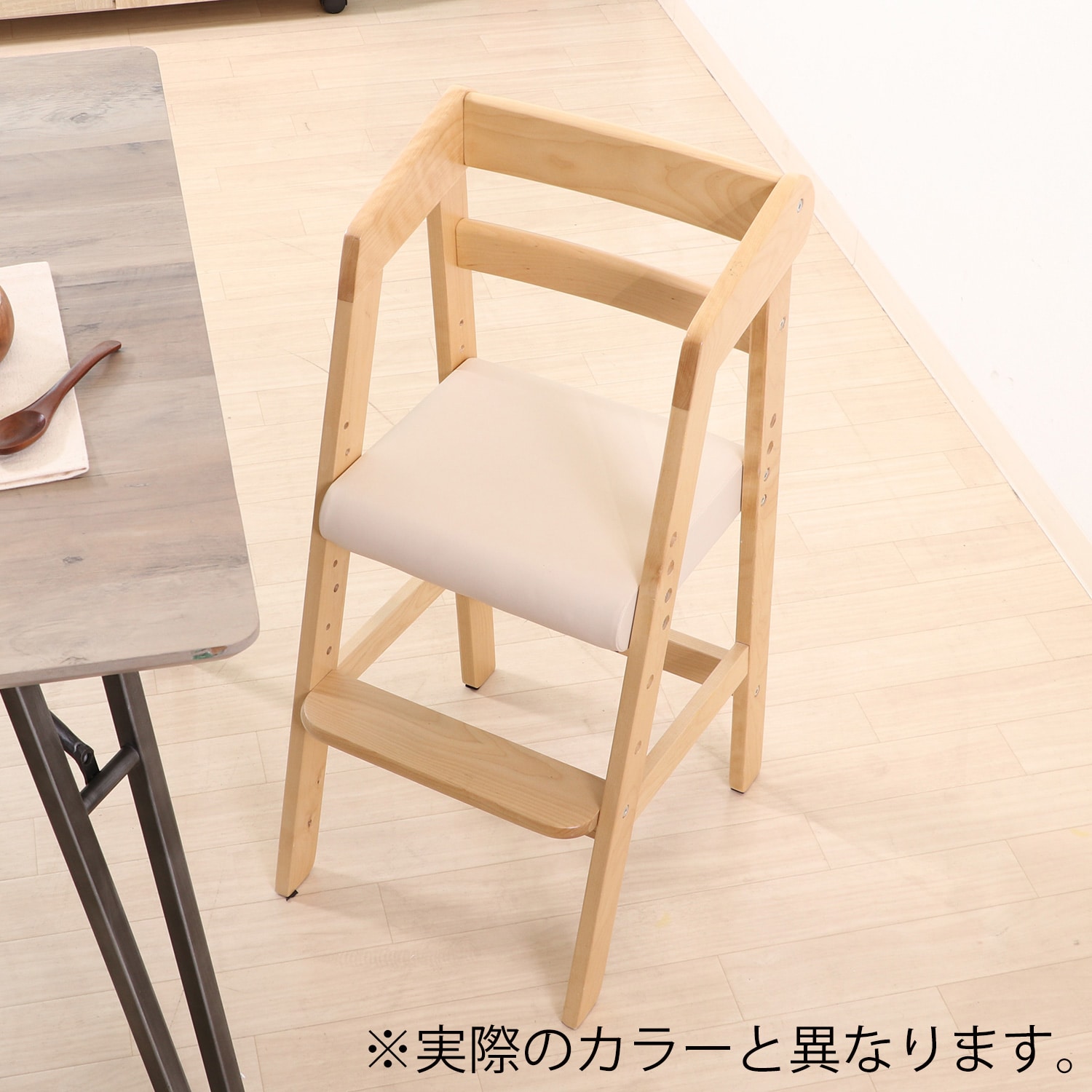 天然木を使用したシンプルなベビーチェア。お子さまの成長に合わせて座面と足置きの高さを調整できます。座面は合成皮革を使用しているので、汚れてもサッとふくだけでお手入れも簡単です。