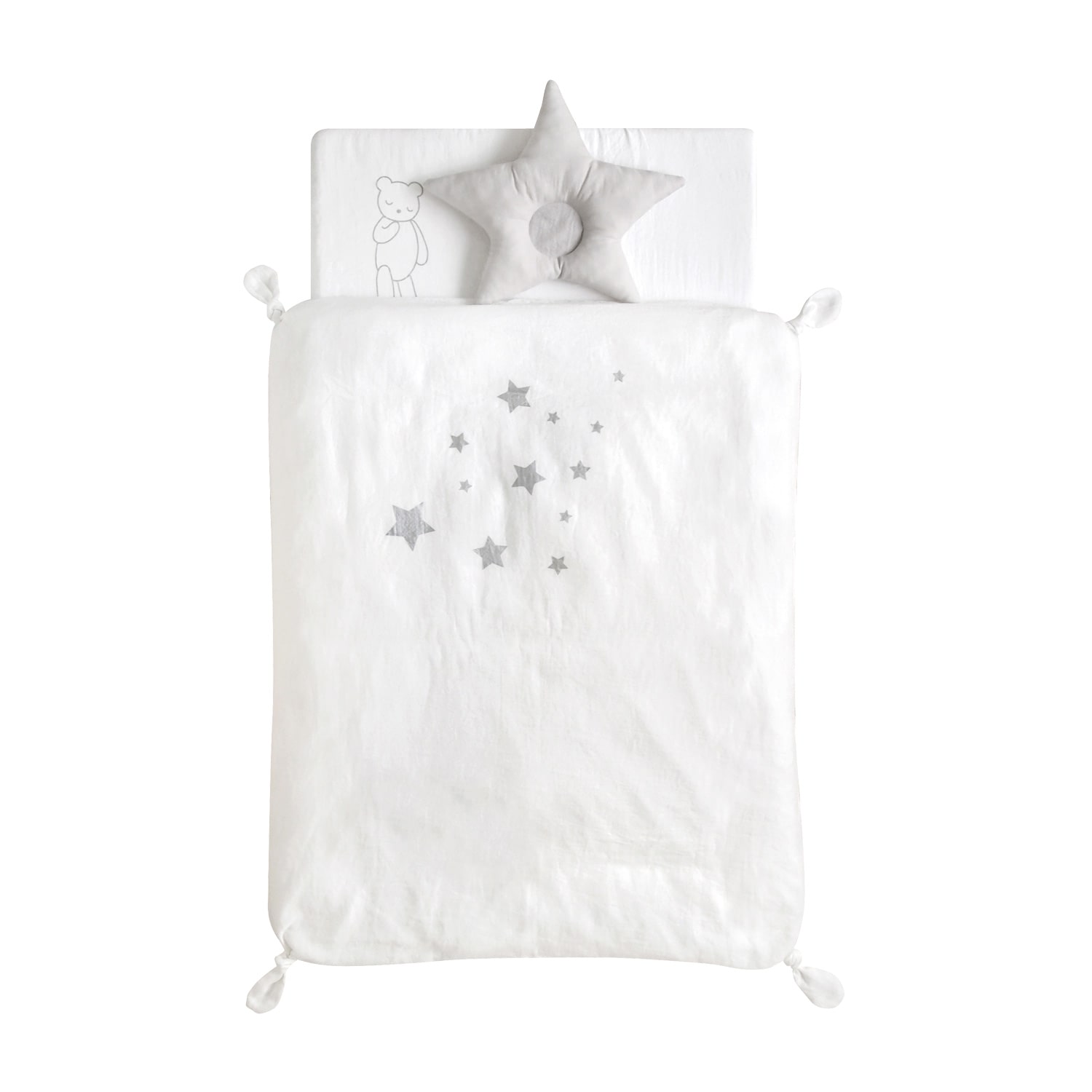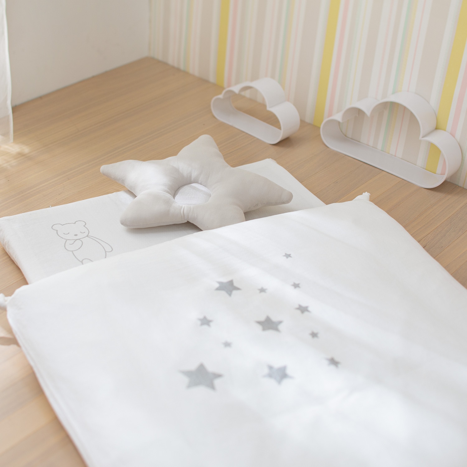 ミニサイズのベッドにぴったりな布団6点セット。やわらかな肌ざわりで、1歳頃までにぴったりのミニふとんセット。全てご家庭でお洗濯ができます。お星さまの形のベビーピローは不安定な赤ちゃんの頭をやさしく支えて、授乳時の補助まくらとしても使えます。