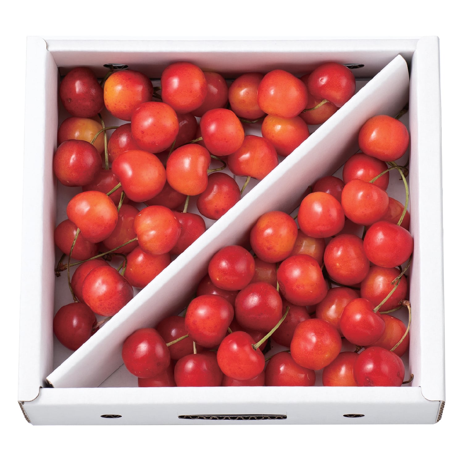 山形県が誇るさくらんぼの王様、「佐藤錦」。毎年6月下旬に収穫が始まりますが、その中からLサイズの食べ頃の粒を選りすぐり、バラ詰めでお届けします。佐藤錦のおいしさは何と言っても、その可愛らしい赤い色合い、たっぷりの果汁、冷やしてちょうどよい甘酸っぱさ。新鮮でツヤツヤの粒が口の中でプチッと弾け、やわらかな果肉が口いっぱいに広がる食感も見逃せません。1年のうちでも、ほんのいっときしか味わえない幸せをどうぞ。