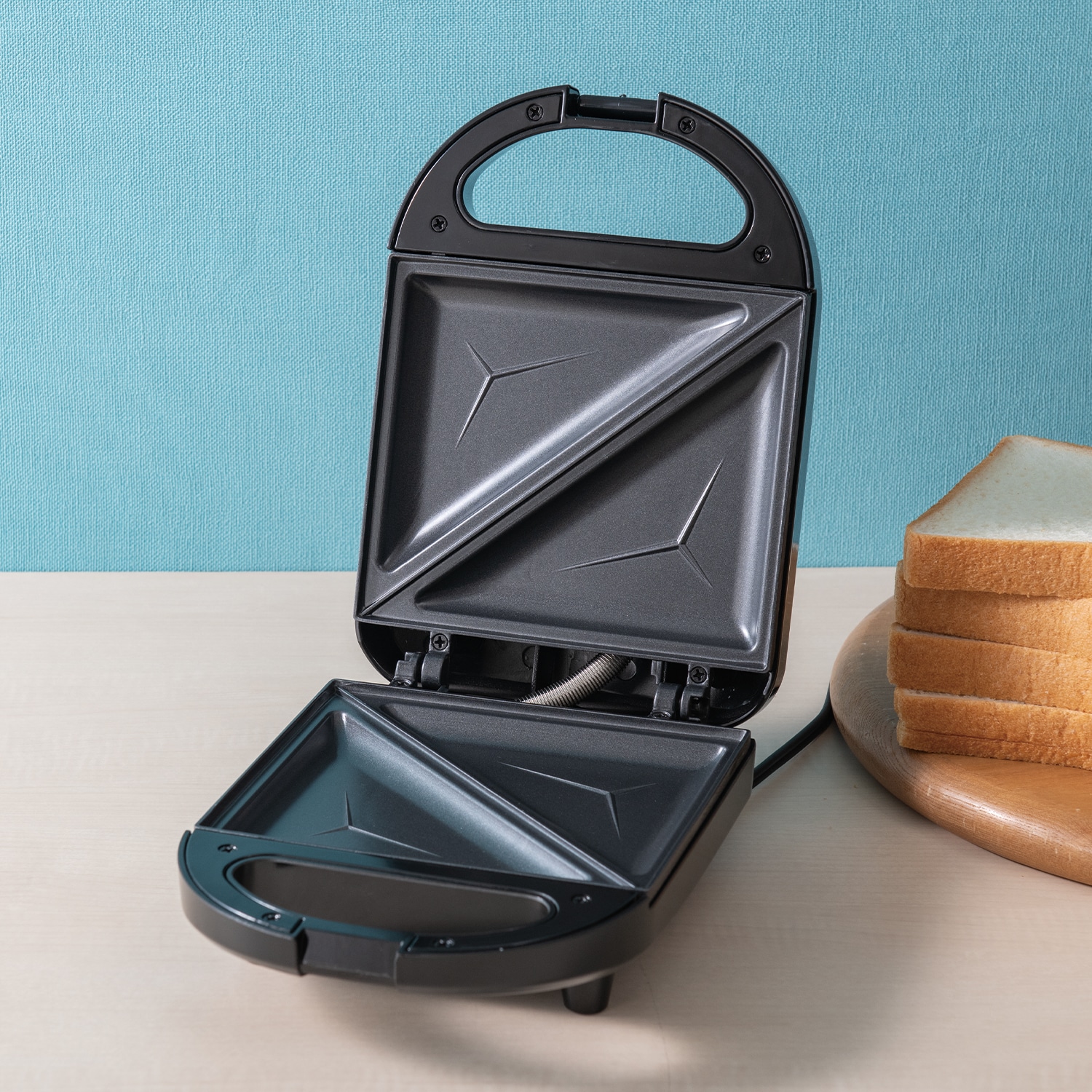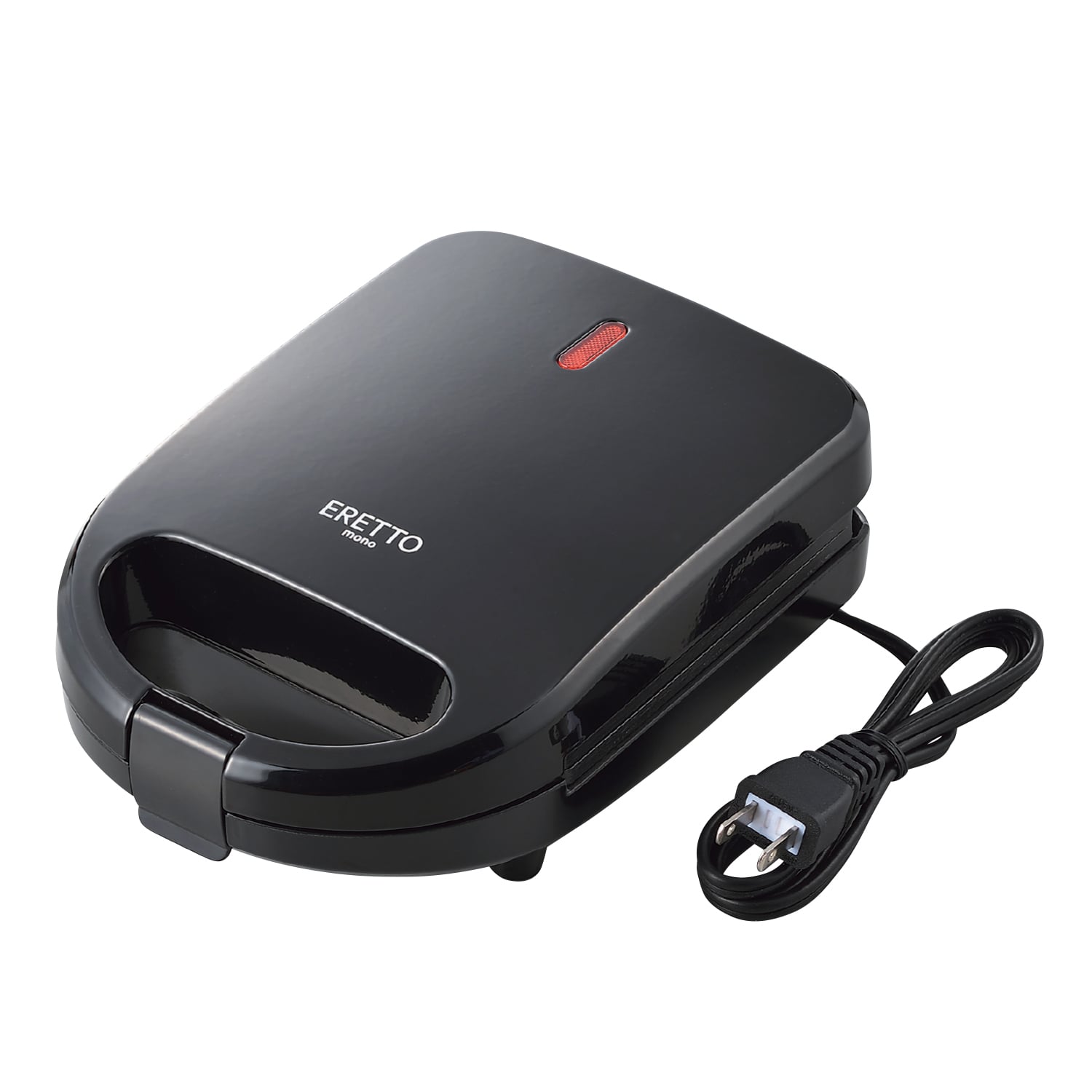 焼きたてのホットサンドイッチと熱々のコーヒーや紅茶があれば、いつもの朝食やおやつの時間がぐんと楽しくなります。作り方は簡単。食パン2枚を、ハムやチーズなど好きな具材をはさんで3~5分焼くだけ。プレートの内面はこびりつきにくく、汚れも落としやすいフッ素樹脂加工なのでお手入れも簡単です。