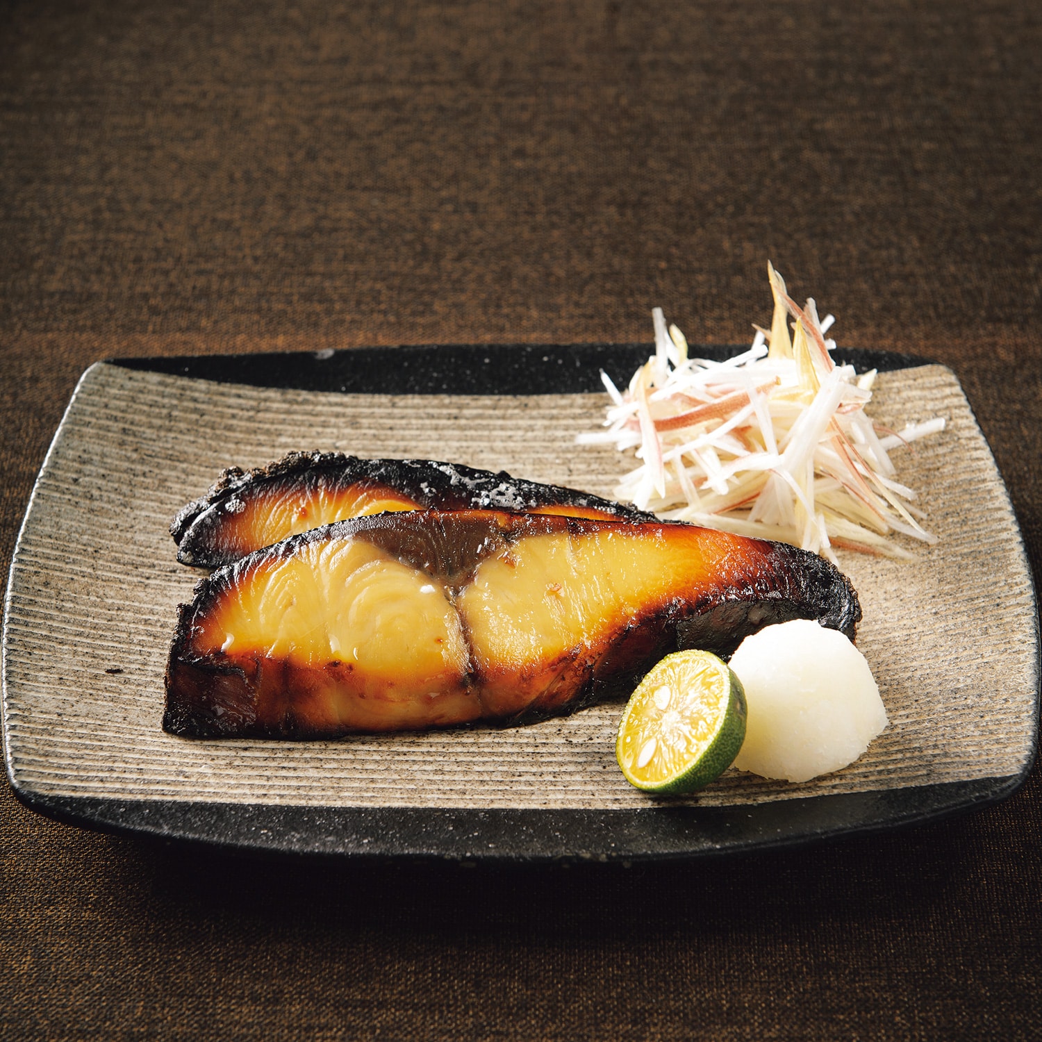 石川県金沢の料亭〈銭屋〉の鰤のみそ漬は、晩秋の風物詩ともいえる品。毎年11月後半からの発送で、この時期を待っている顧客も多い人気商品です。その日に仕入れた鰤を、家庭で焼ける大きさを考え、板前が丁寧に切り出しています。味噌は、米と大豆の粒が残る甘めの特製味噌を使用。端に少し焦げ目がつくほど焼けば、その甘い香りがおいしそうに漂います。