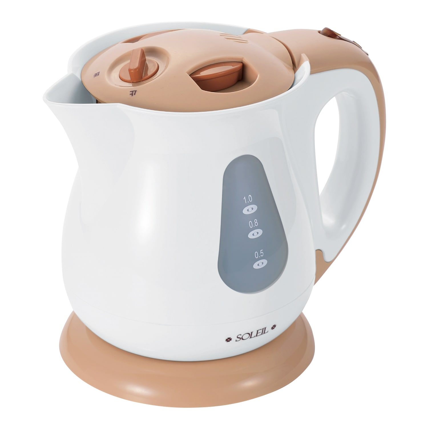 サイズ(約):幅24×奥行16×高さ21cm、容量1L/重量(約):925g/材質:ポリプロピレン/AC100V-900W、電源コード1.1m/転倒湯漏れ防止機能、空焚き防止機能/中国製