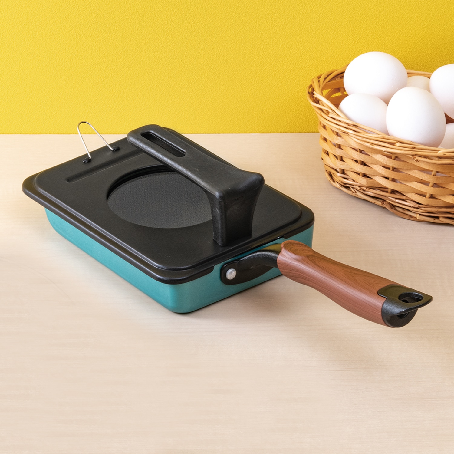 使いやすさを求め、細部までこだわったフライパンと玉子焼器。どちらも耐摩耗試験200万回クリアというフッ素樹脂加工仕様。持ち手は樹脂にシリコーンをコーティングしてしっとりとした握り心地です。調理具合が確かめられる強化ガラスの蓋、フライパンには菜箸などが置けるつまみの形状など、忙しい朝食づくりにぴったりです。