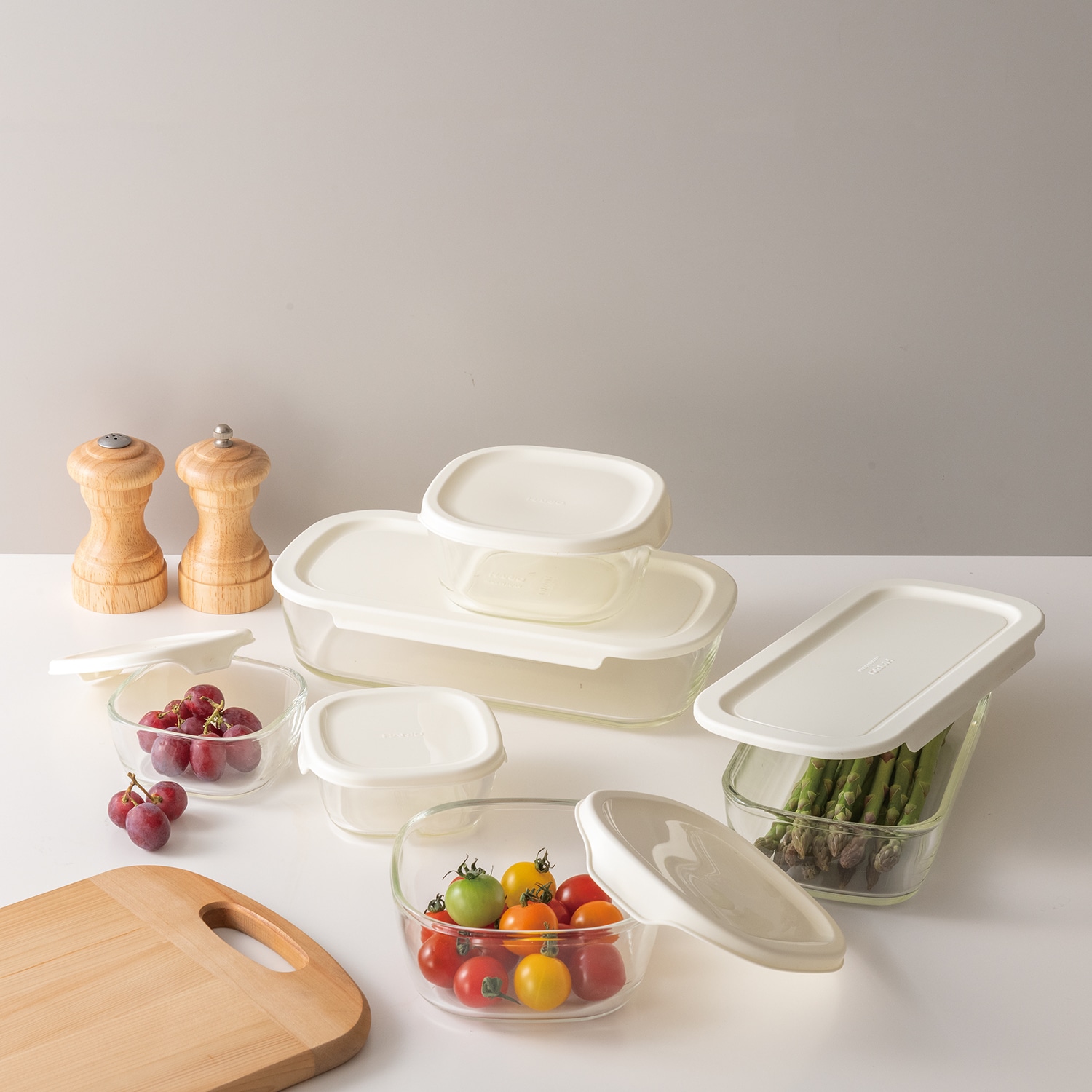電子レンジもオーブンも使えて、スタッキングできる耐熱ガラスコンテナ