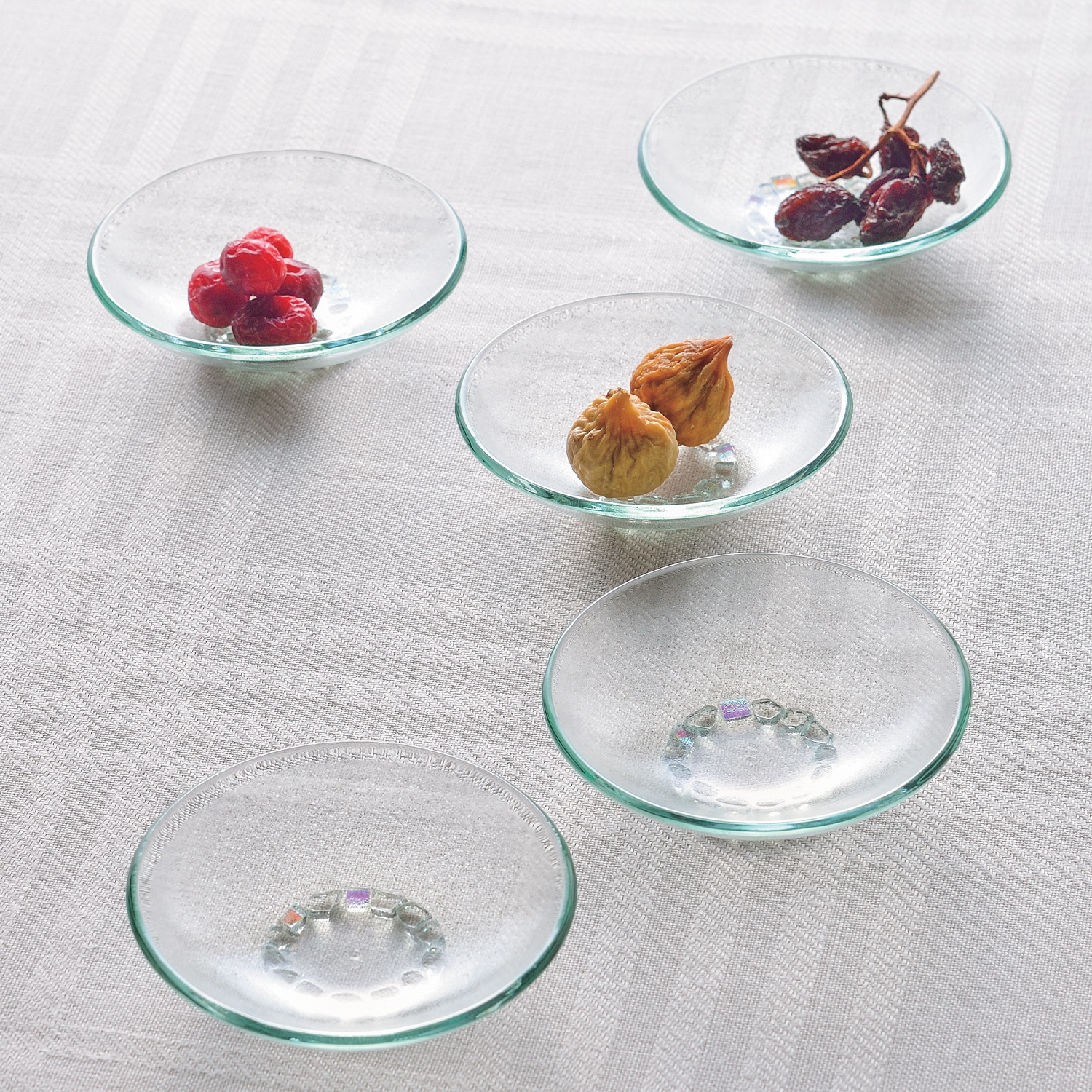 サイズ(約):(直径8.5×高さ2cm)×5/材質:フロートガラス/日本製
