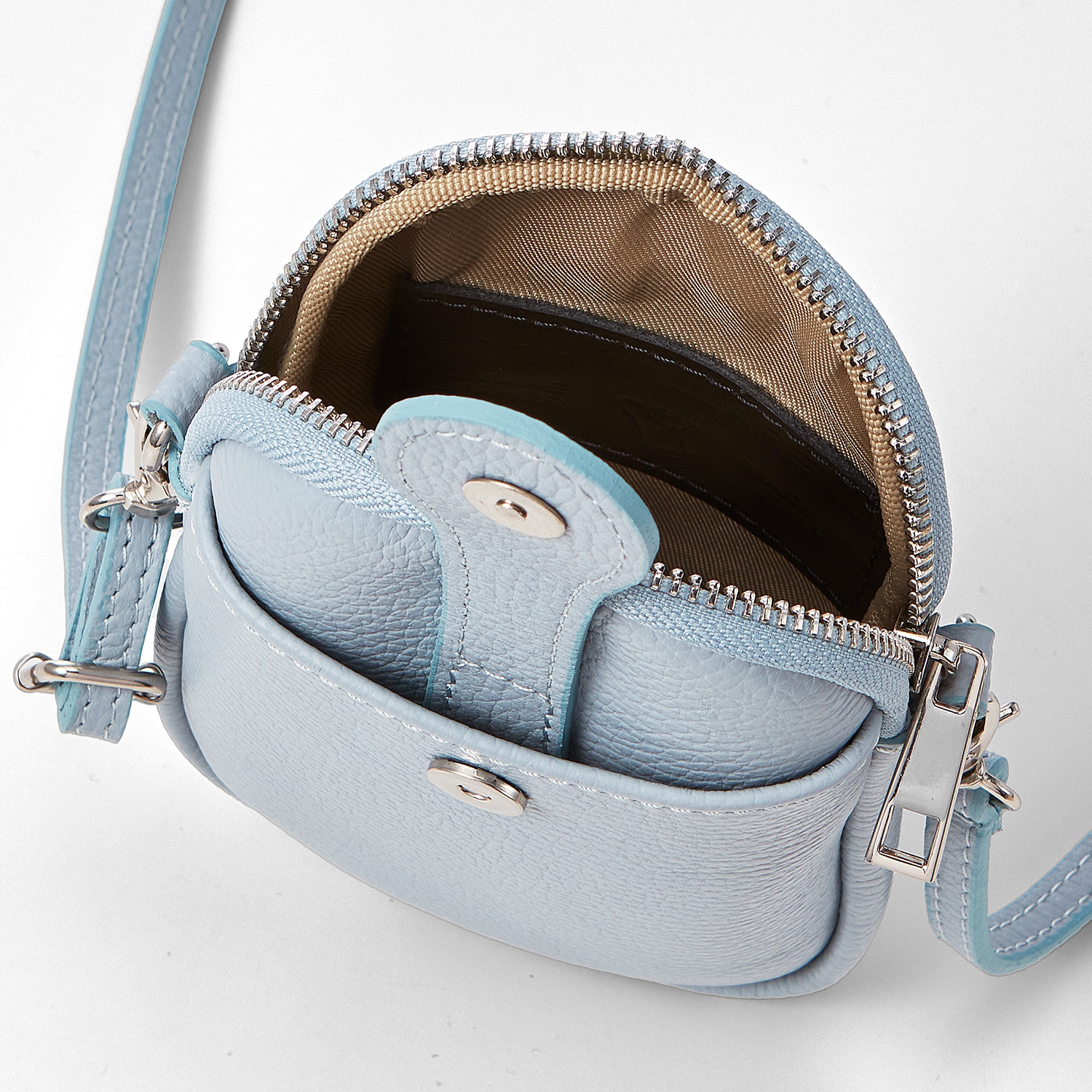 - サイズ(約):18.5×12×マチ2cm、ショルダー立上り30~59cm(着脱可)/重量(約):180g/素材:牛革/仕様:ファスナー開閉、外=マグネットホックポケット×1/イタリア製