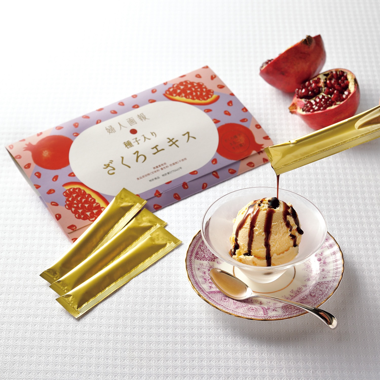 古代より生命の果実といわれるザクロ。イラン産の農薬不使用のザクロを特許製法により種子ごとすりつぶしたエキスを使いやすいスティックタイプにしました。スティック1本に約1個分のザクロが使われており、ザクロの実の中にある種子をすりつぶすことによって、種子の中にあるオイルや繊維などすべての成分がこのエキスの中に凝縮されています。ジュースにしたり、ヨーグルトにかけてもおいしくお召しあがりいただけます。